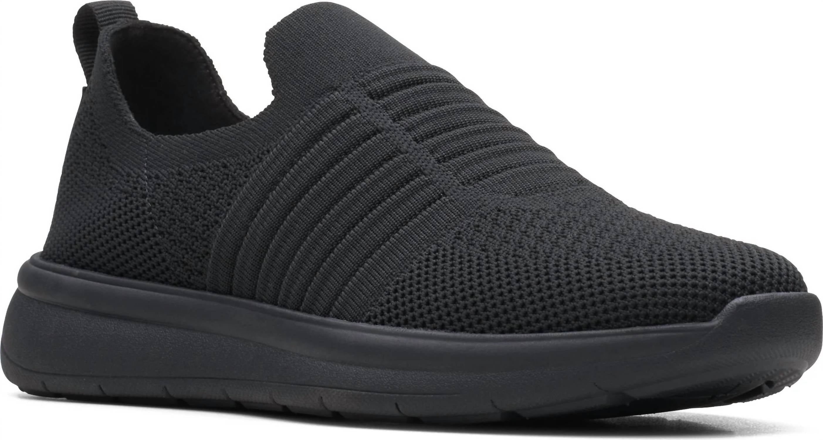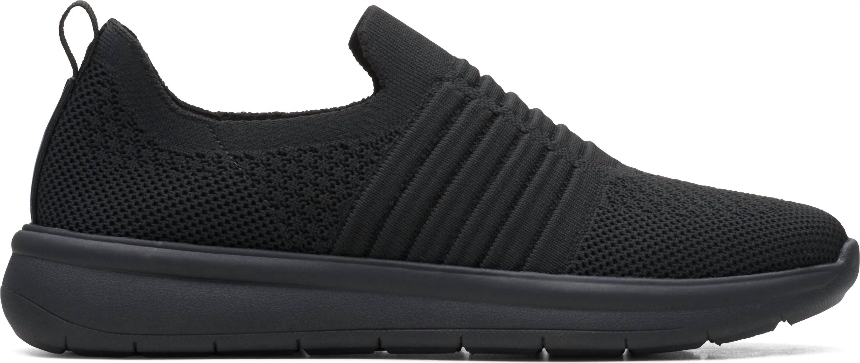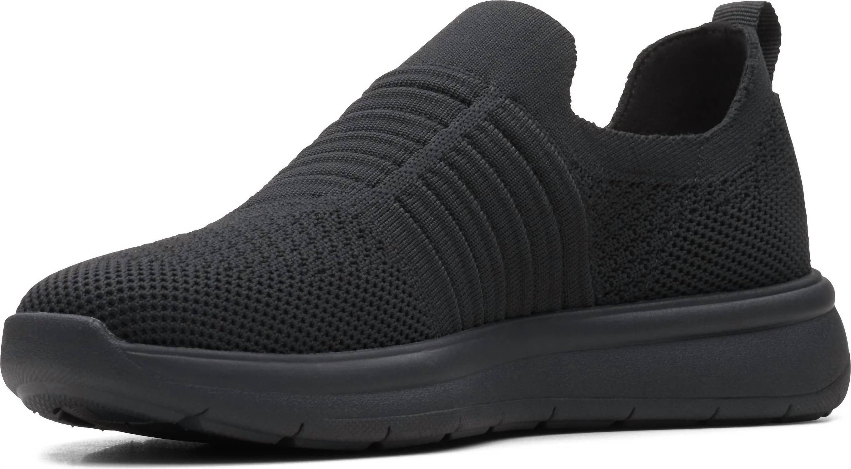 Introducing the Men's Ezera Walk Sneaker by Clarks, a minimalist and practical choice for relaxed everyday wear or a stylish dinner party. Featuring a round toe and platform heel, this slip-on shoe is lightweight and machine washable, enhancing its convenience and ease. The removable Cushion Soft footbed combined with super-soft EVA foam ensures remarkable underfoot comfort, while an airy EVA outsole is designed to absorb impacts effortlessly. Perfect for spring, these black sneakers are tailor-made for a chic, yet relaxed look.