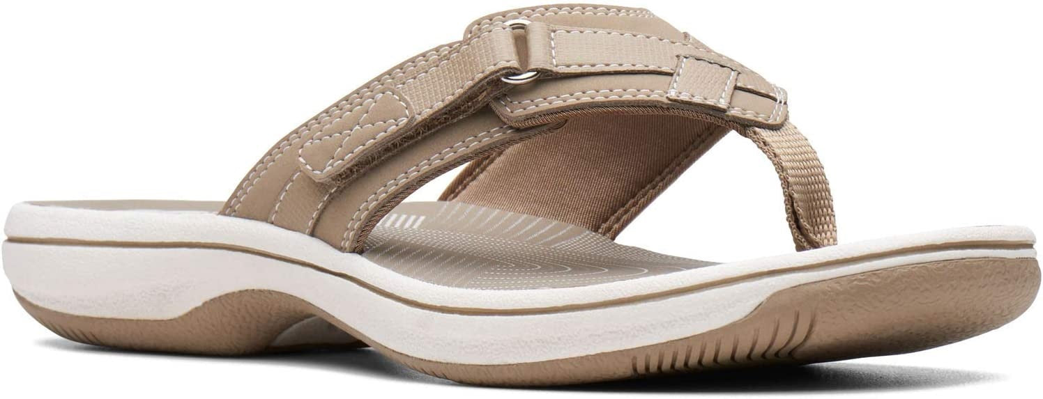 Love every step in the casual sporty look of Clarks Collection's Brinkley Bree flip-flop sandals with adjustable straps and a slight heel that elevates comfortable style.| 1-1/4 heel| 3/4 platform| Round-toe slip-on platform thong flip-flop sandals with adjustable stay-put closure at strap| | Manmade upper; manmade sole| Imported
