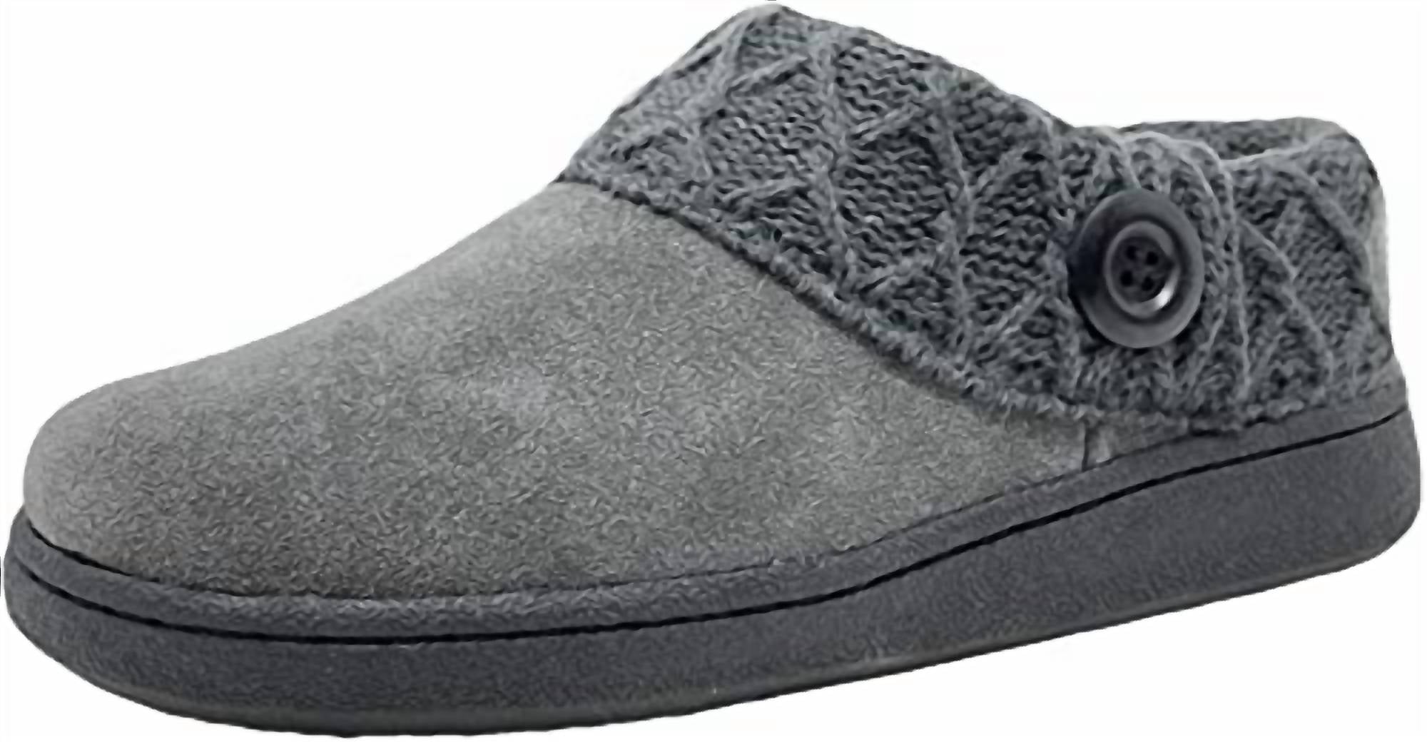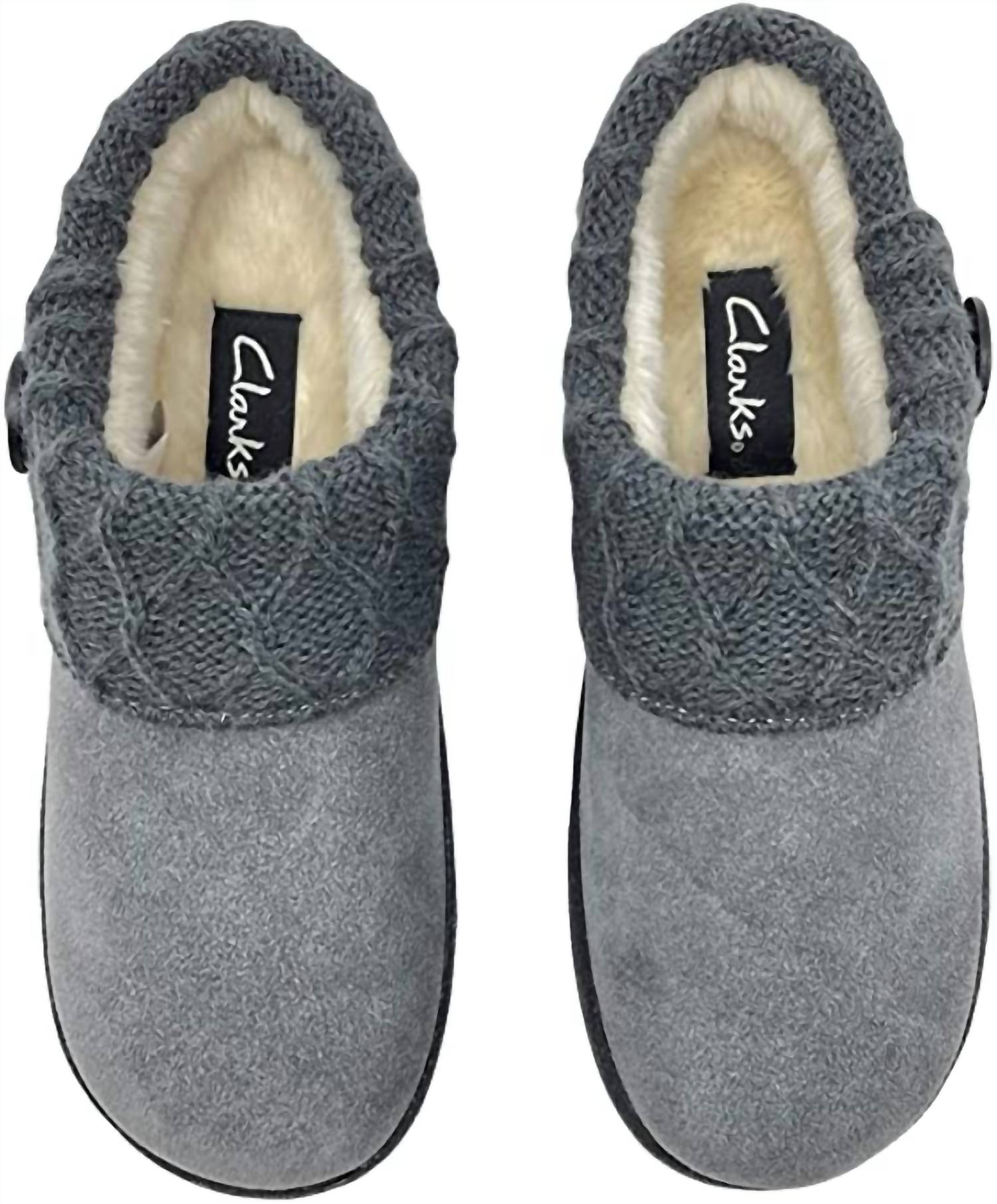 So comfy it's like you're walking on clouds. Experience unmatched comfort with Clarks Women's Slipper Suede Leather Knitted Collar Clog Slippers. Crafted from premium suede, these slippers feature a knitted collar for added style and comfort, and are available in a minimalist All Grey color. Designed with a flat heel and round toe, they provide a secure, medium-width fit perfect for both indoor and outdoor use. Ideal for spring, these slippers make a thoughtful gift for any woman and are perfect for cozy evenings or dinner parties.