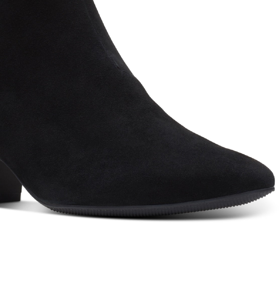 2 block heel|Pointed-toe booties with inner ankle zipper closure|Cushioned insole for added comfort|Suede upper; fabric lining; manmade sole|Imported