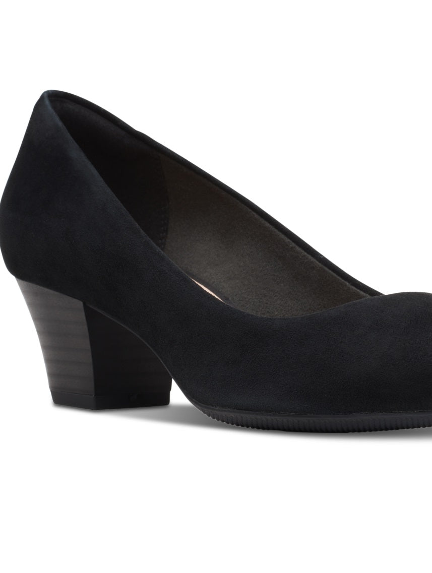 2 block heel|Pointed-toe slip-on pumps|Signature cushioning| cushioned insole and flexible sole for added comfort|Suede upper; fabric lining; manmade sole|Imported