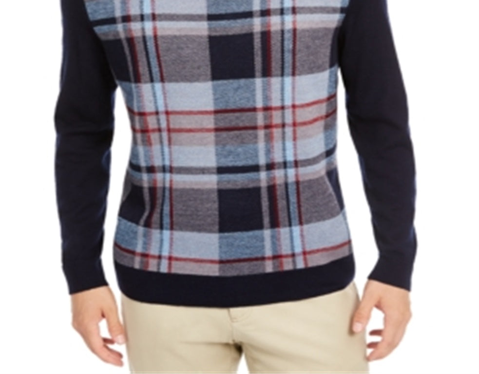Club Room Men's Plaid Panel Merino Wool Blend Sweater Blue Size X-Large