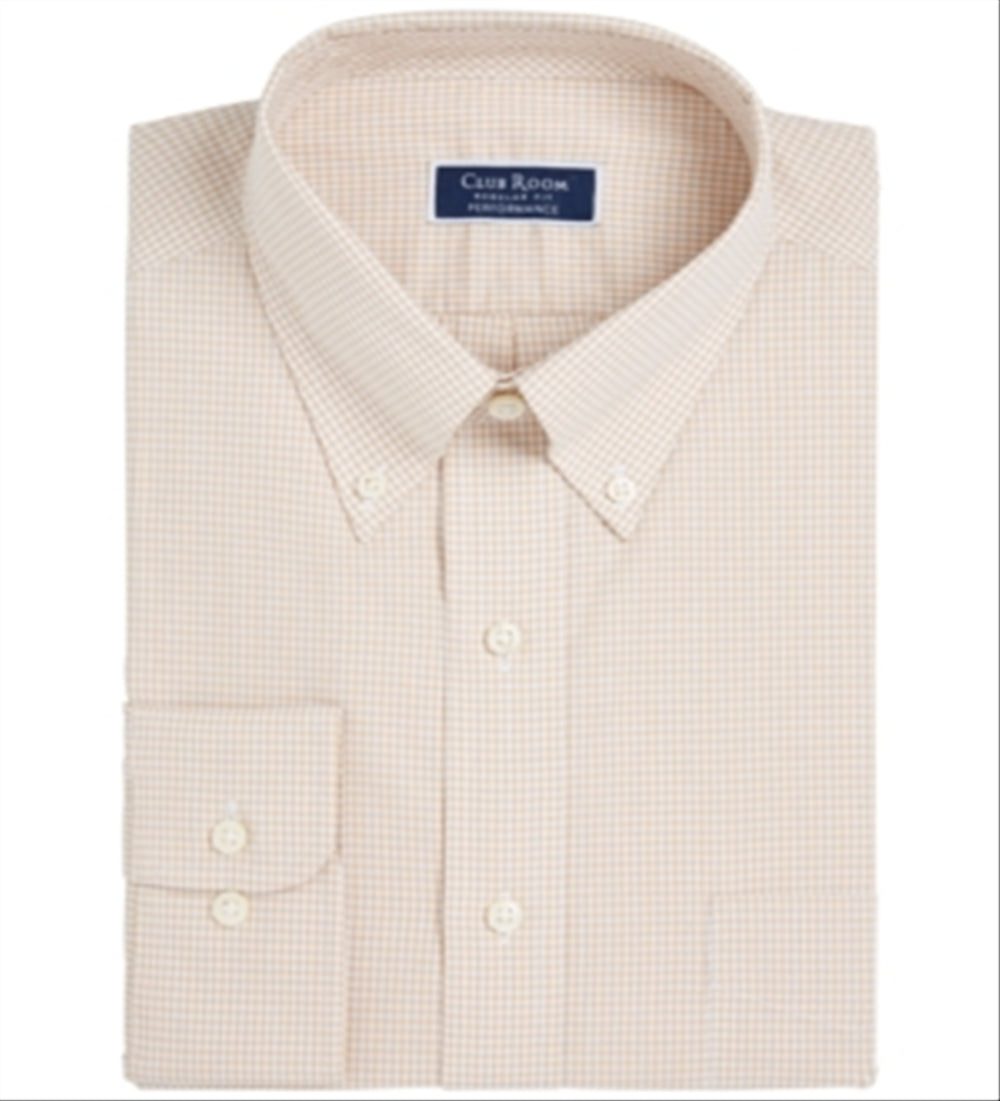 Club Room Mens Regular Fit Mini Gingham Dress Shirt Brown Size 34-35