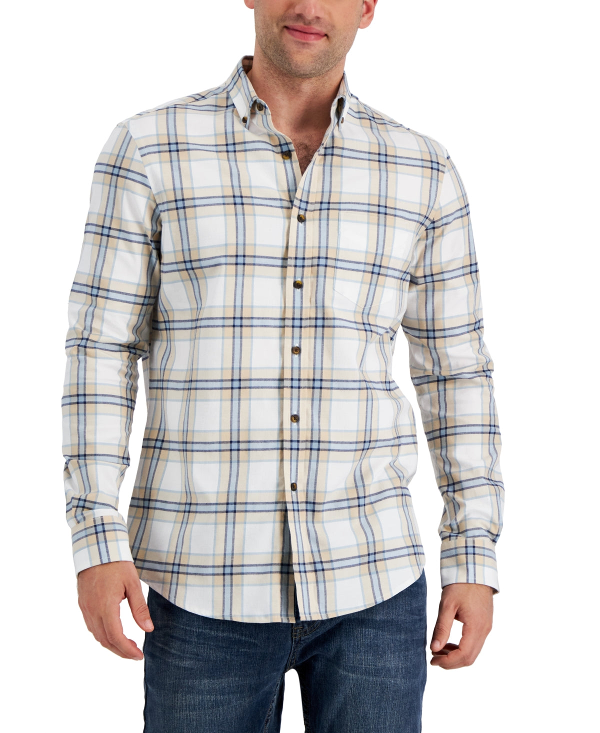 Club Room Men's Tac Plaid Double Faced Woven Long Sleeve Shirt Yellow Size Medium