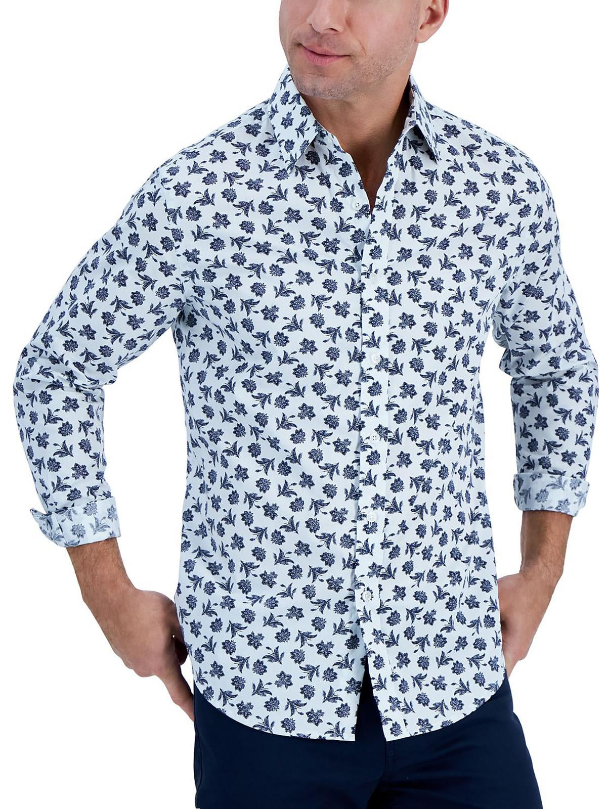 Club Room Men's Classic/Regular Fit Performance Windowpane Shirt Navy Size 32X33