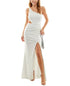 Scuba crepe; Stretchy and supportive|Side cutout; leg slit|Lined|One-shoulder neckline; Gown silhouette|Imported|Back zip closure|Floor-length formal dress