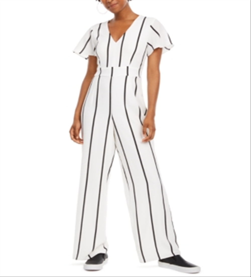 Crystal Doll Junior's V Neck Jumpsuit White Size 0