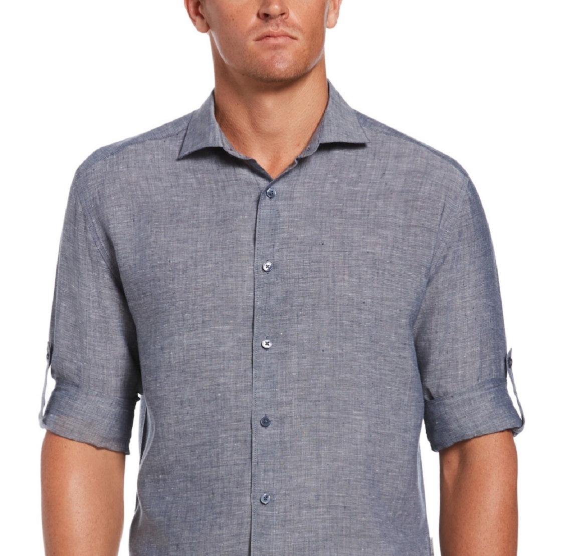 Adjustable roll-tab cuffs|Imported|Spread collar