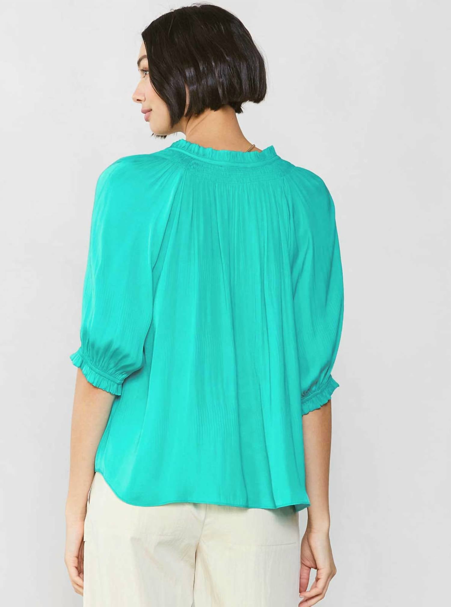 A timeless blouse that will never go out of style. Introducing the Dreaming Of The Beach Top by Current Air, a perfect choice for your spring wardrobe. This aqua blouse, crafted from 100% Polyester, features a loose fit and short sleeves with a V-neckline. Its pull on closure ensures ease and comfort. Care for this solid pattern top with a machine wash. Ideal for a beach vacation or a casual dinner party.