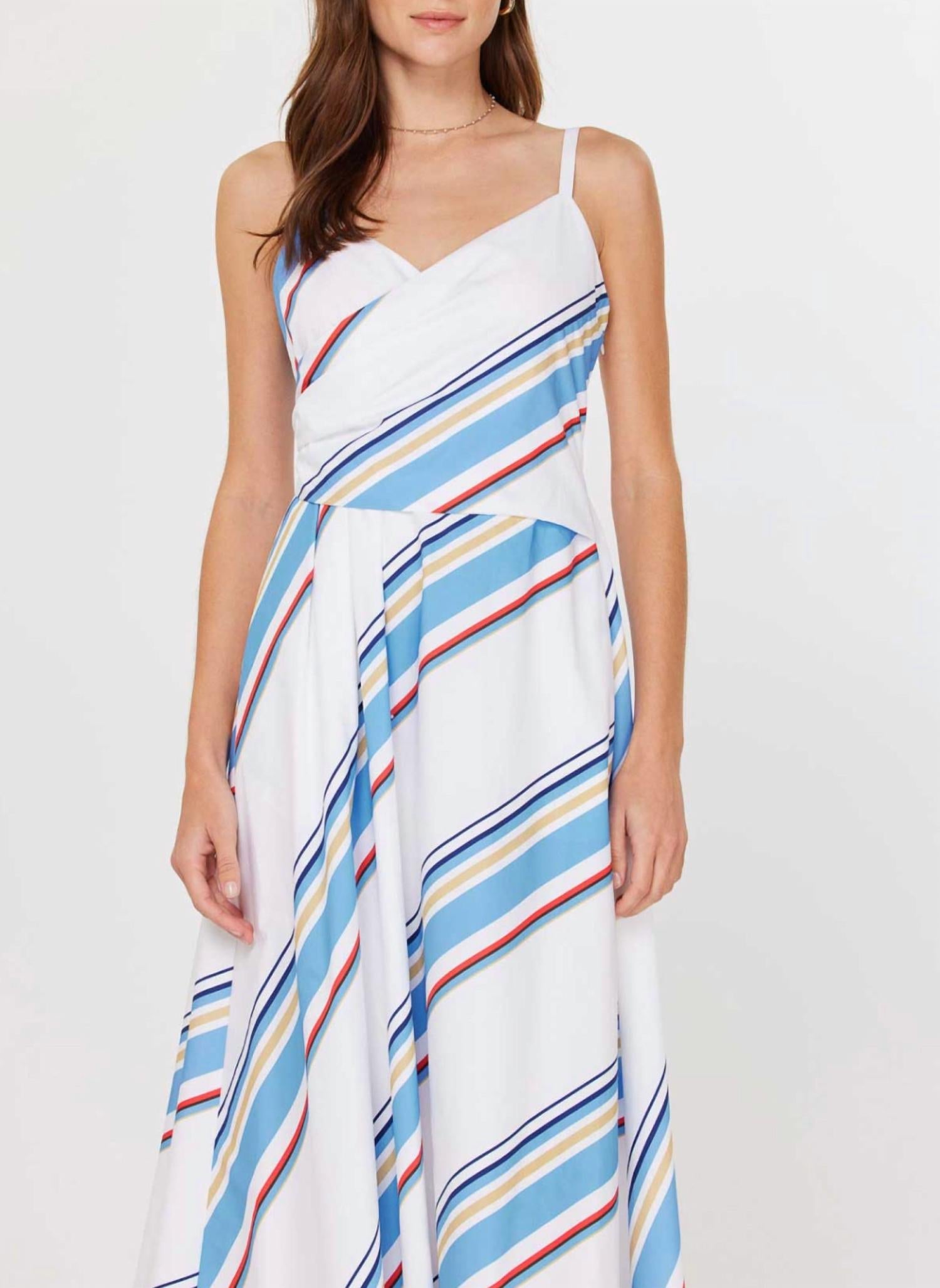 Meet the Current Air Juliette V-Neck Wrap Midi Dress, an epitome of chic summer style designed with adjustable spaghetti straps. Composed of 100% cotton, this dress offers a breathable and crisp feel, featuring a flattering V-neck silhouette that flows into a 48-inch midi length. Secured with a side zipper and a self-fabric wrap tie, it is crafted to accentuate your curves effortlessly. Care for it with ease by machine washing and tumble drying, making it perfect for any occasion from a dinner party to a leisurely brunch.