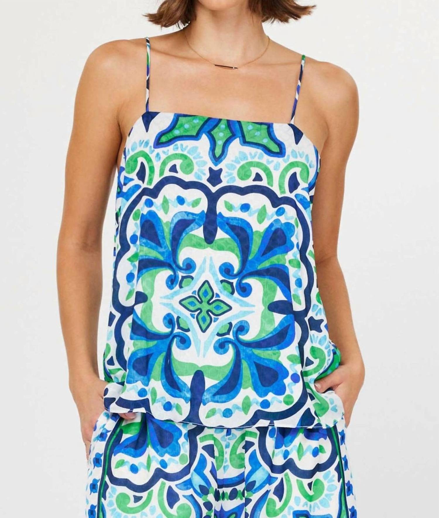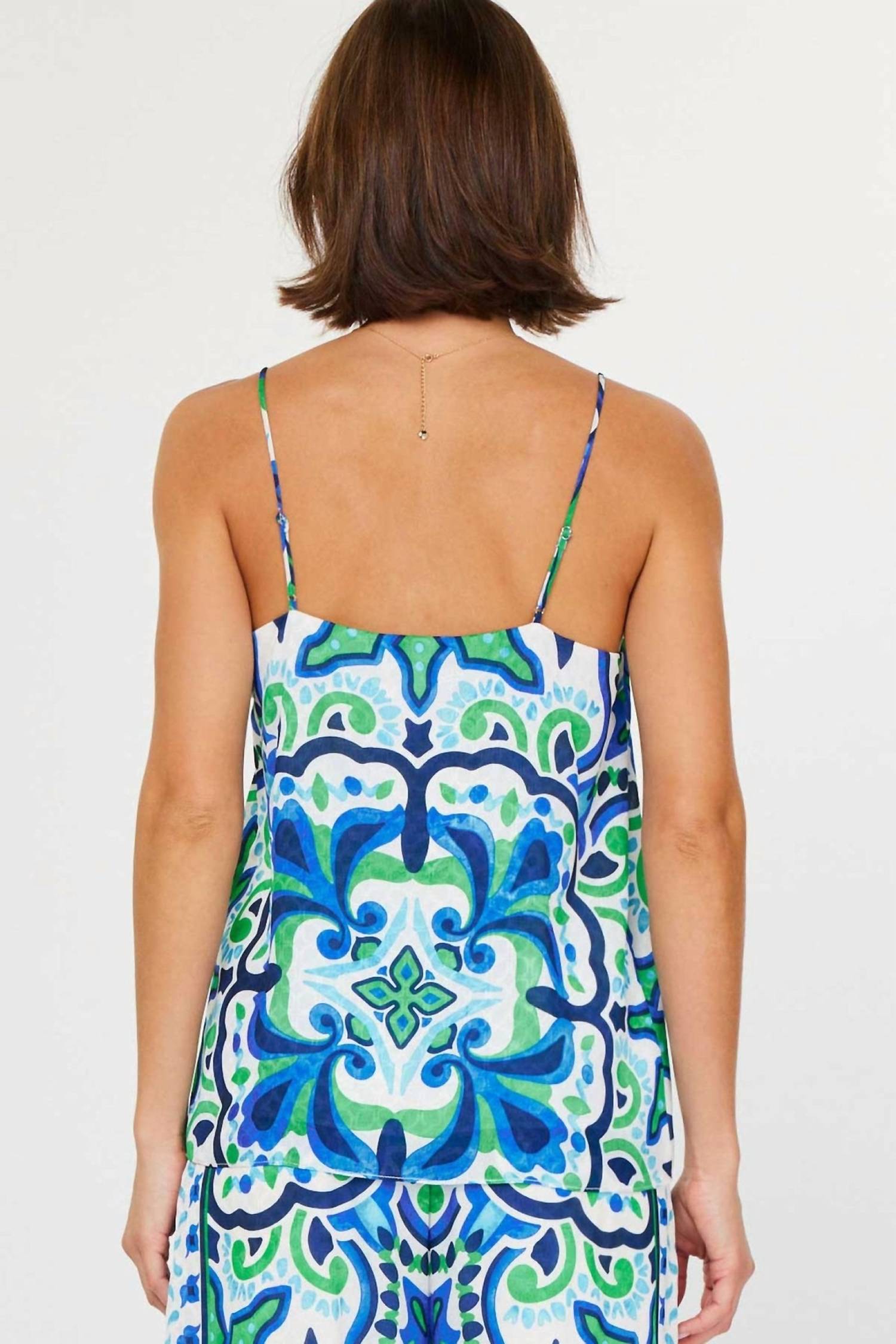 Tuck this cami into your favorite pair of jeans for a casual yet polished look. Elevate your summer style with the Printed Cami Top by Current Air, designed for those seeking a touch of bohemian flair. This women's camisole features spaghetti straps and showcases a playful tile pattern in a vibrant blue hue. With a unique side button detail and easy pull-on closure, it's ideal for vacation wear. Originating from N/A, this top is designed for effortless style and comfort.