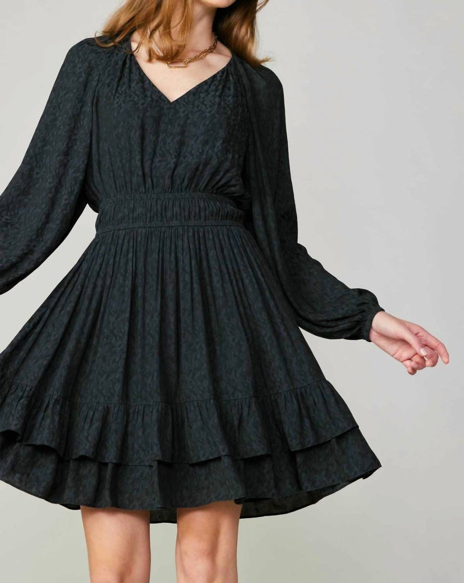 The perfect length dress does exist. Embrace elegance with the Printed Midi Dress by Current Air, perfect for your next dinner party this fall. Showcasing a chic floral pattern in minimalist style, this black sheath dress features a sophisticated V-neck and long sleeves. Made primarily from recycled polyester, this eco-conscious piece blends sustainability with modern fashion. Enjoy easy wear with its pull-on closure, perfect for Thanksgiving festivities.