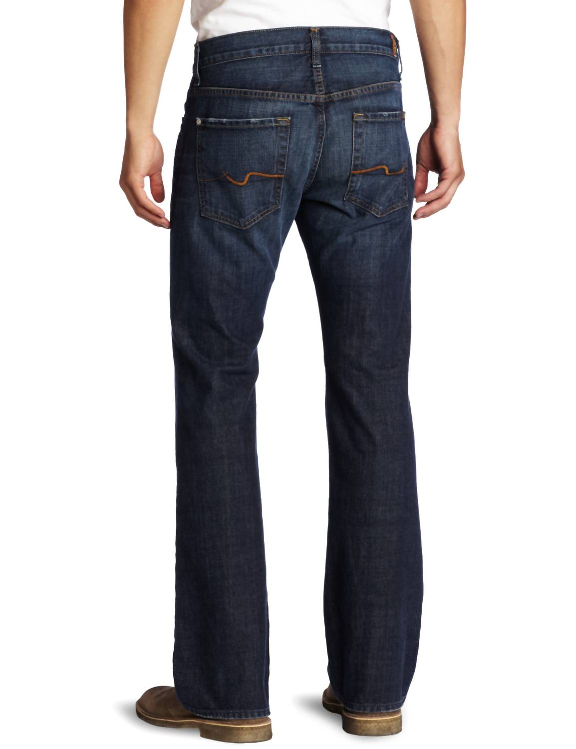 Bootcut jean featuring five-pocket styling with subtle abrasions. Zip fly with button.