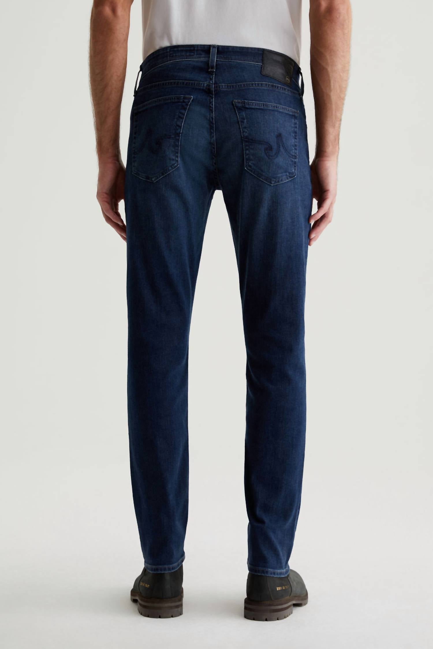 Discover the Everett Slim Straight Jean by AG Jeans in a deep indigo Armonia, ideal for a stylish dinner party or streetwear ensembles. These jeans offer a mid-rise waist with a straight fit that relaxes from hip to knee, tapering slightly at the leg, featuring a front rise of 10 1/4", knee opening of 16 1/2", bottom opening of 15", and an inseam of 34". Crafted from 9 oz. Airluxe™ Aerial Nylon Denim, it comprises 73% Cotton, 25% Polyamide, and 2% Polyester for comfortable stretch. Closure is secured with a zip. Care: Machine wash and tumble dry for easy maintenance.