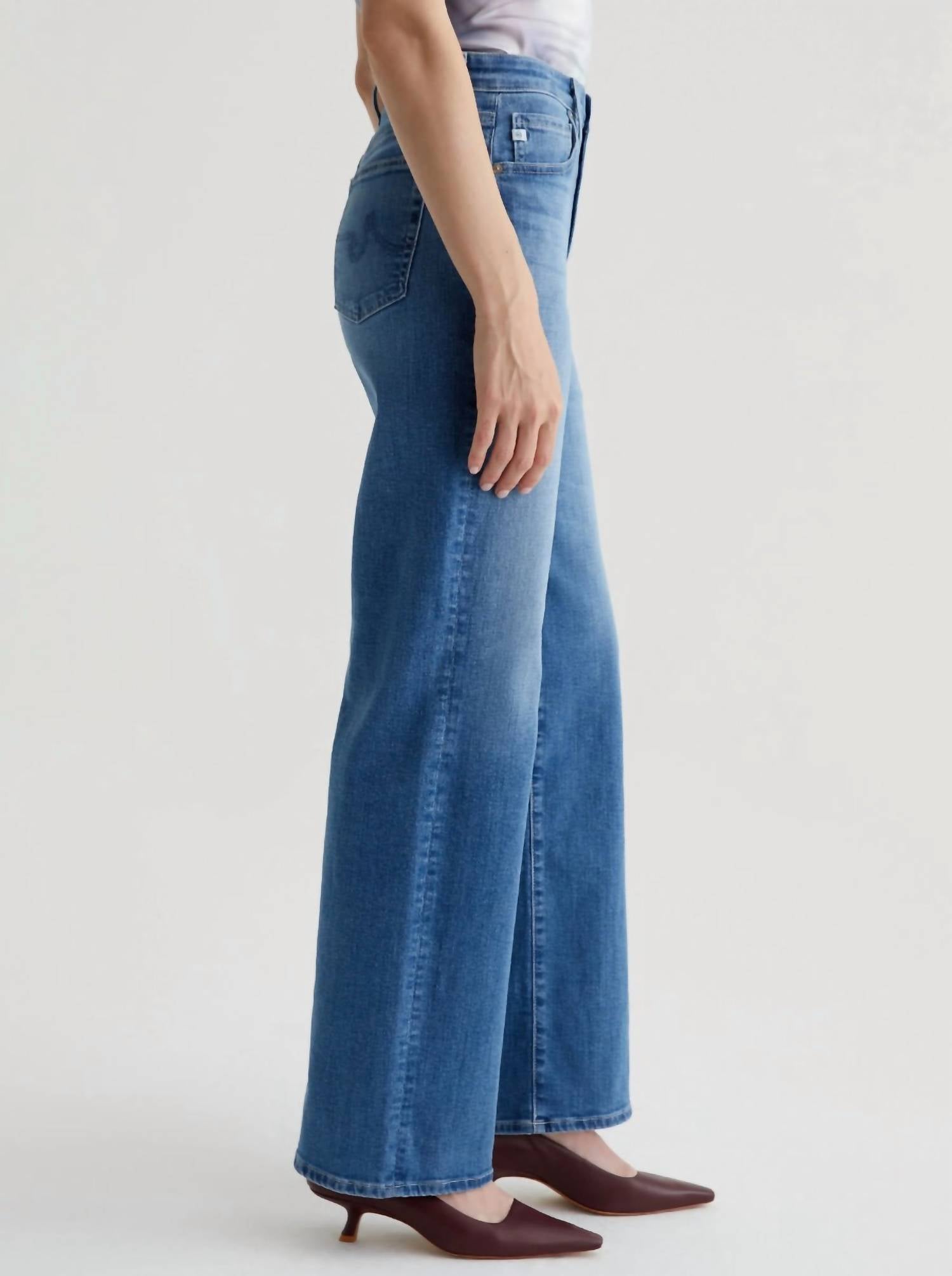 Fit to perfection, we love these high-waist jeans and you will too. Introducing the Kora Jeans by AG Jeans, a stylish high-rise choice in the attractive color 'Fortunate'. These wide-leg jeans offer a comfortable fit through the legs, featuring an ultra-high 11.5" front rise and a 32" inseam. Crafted from 99% Cotton and 1% Elastane, this piece is made in the USA with a classic button closure. Care is easy with machine wash cold instructions, making these jeans perfect for versatile everyday wear.