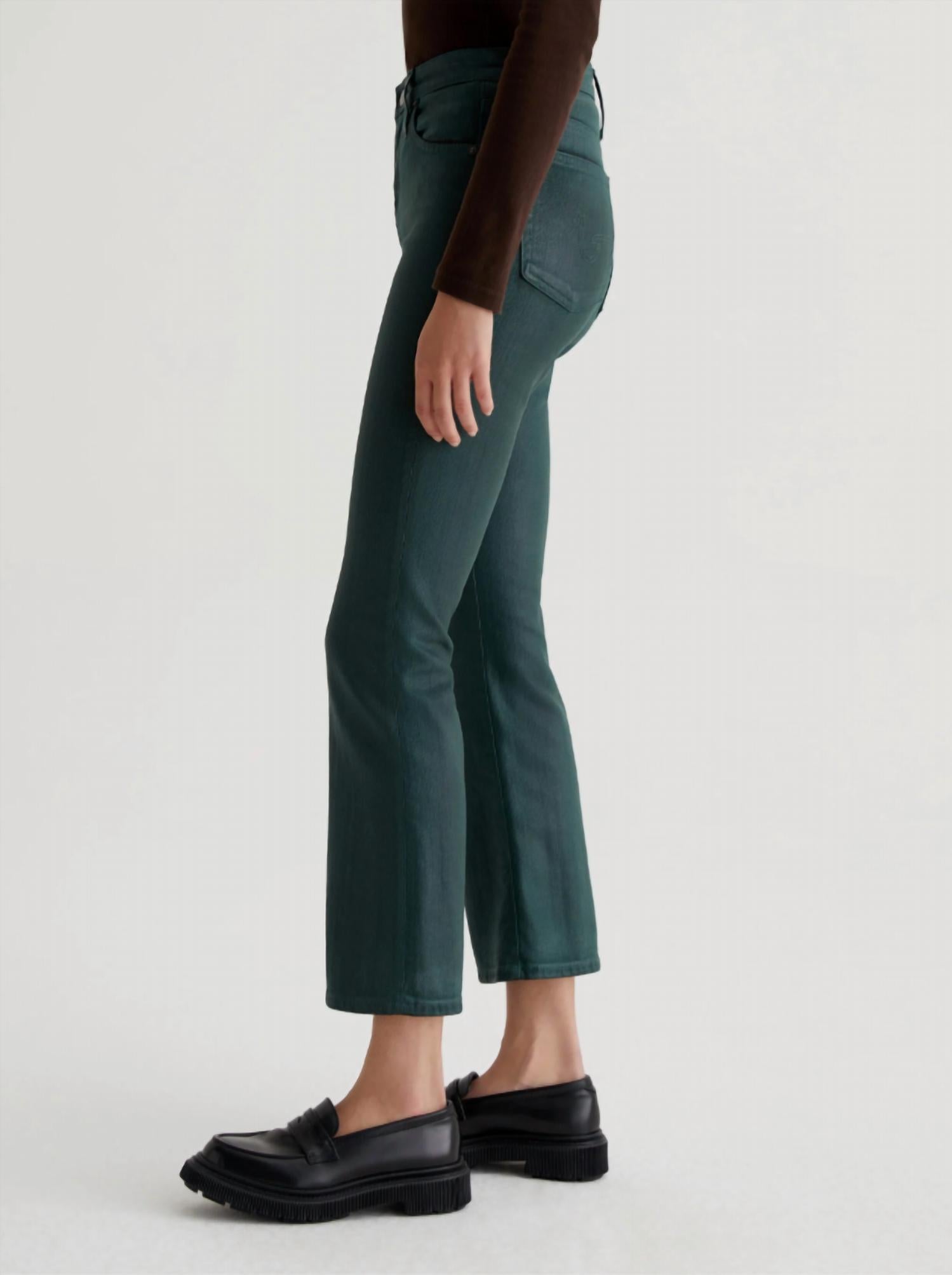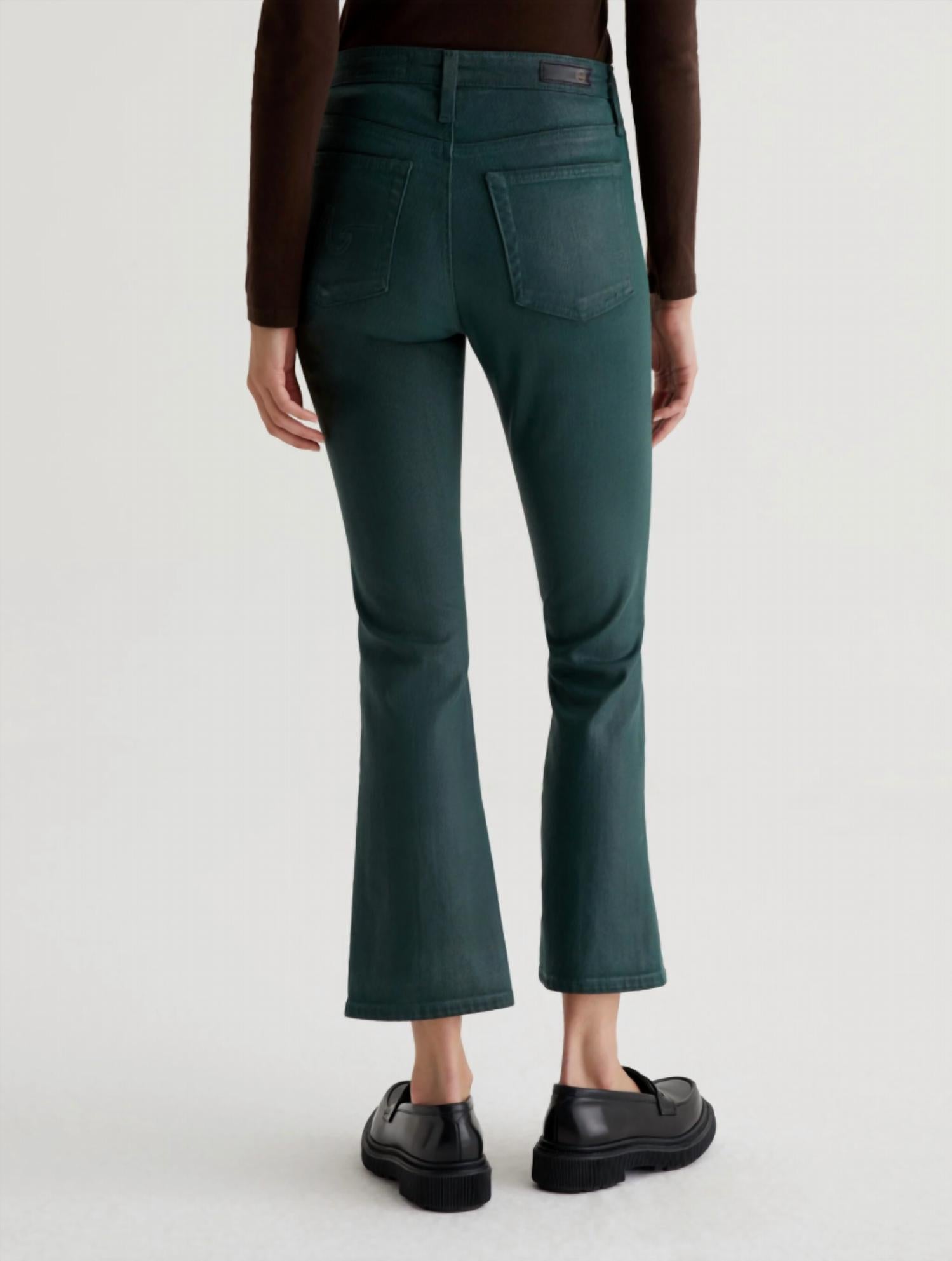 Comfortable and stylish, we love this cropped jean for all of the obvious reasons. Introducing the Pleather Farrah Boot Crop by AG Jeans, an elevated take on the classic bootcut jean with a high-rise fit. Crafted from a 10 oz. Dover Stretch Denim, this Hidden Pine cotton blend features a glossy leatherette finish for a chic silhouette. With a 10" front rise, these jeans have a skinny fit through the leg, subtly flaring to an 18.5" bottom opening, and a 28" inseam that offers a flattering cropped length. Care instructions: Machine wash.