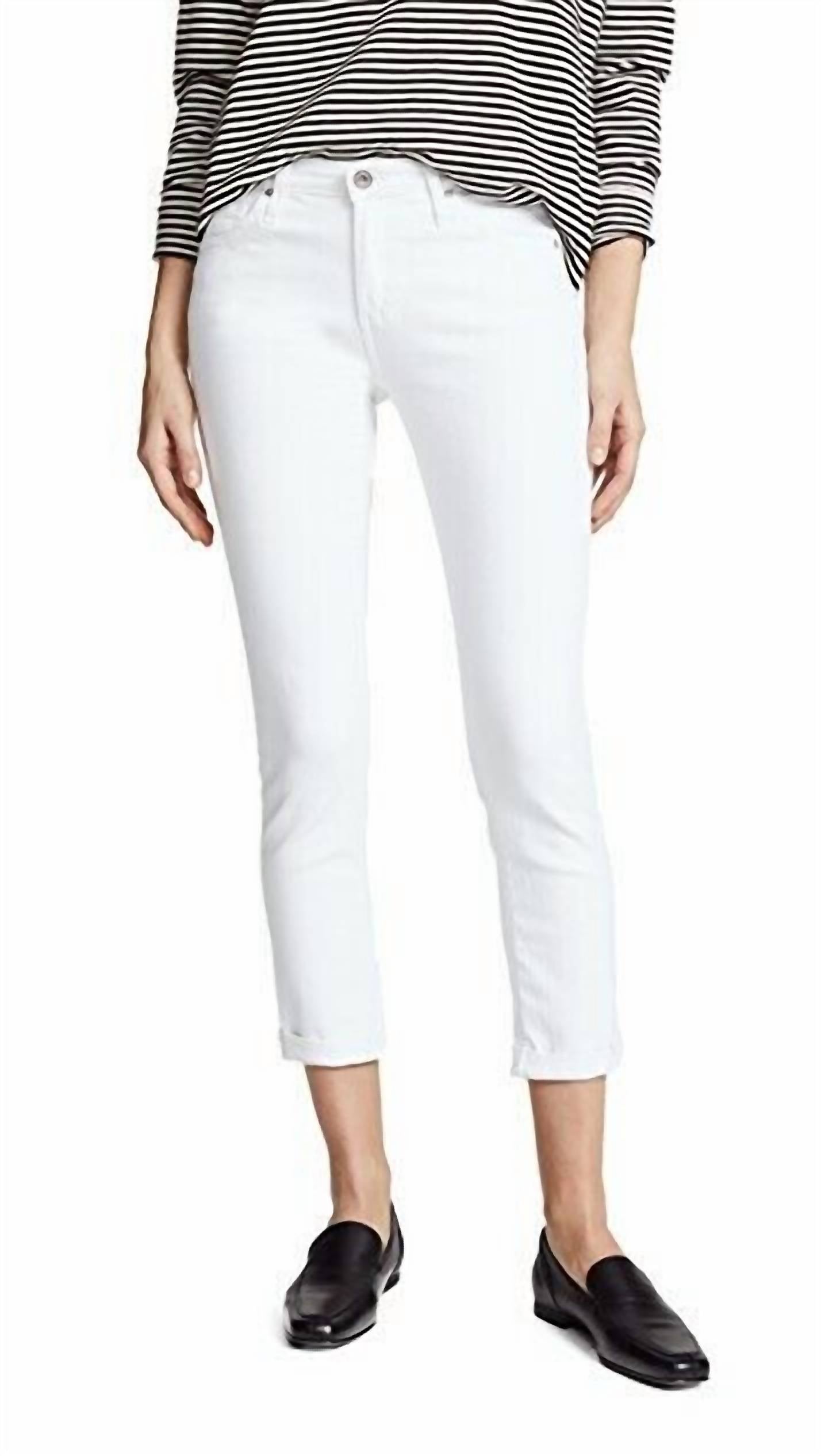 The perfect cropped jean for those transitional seasons.Cropped jeans with tonal stitching and a classic five-pocket design. Features a zip fly and button closure. Made from 98% cotton and 2% polyurethane. Inseam measures 26" with a front rise of 8.5". Machine washable.