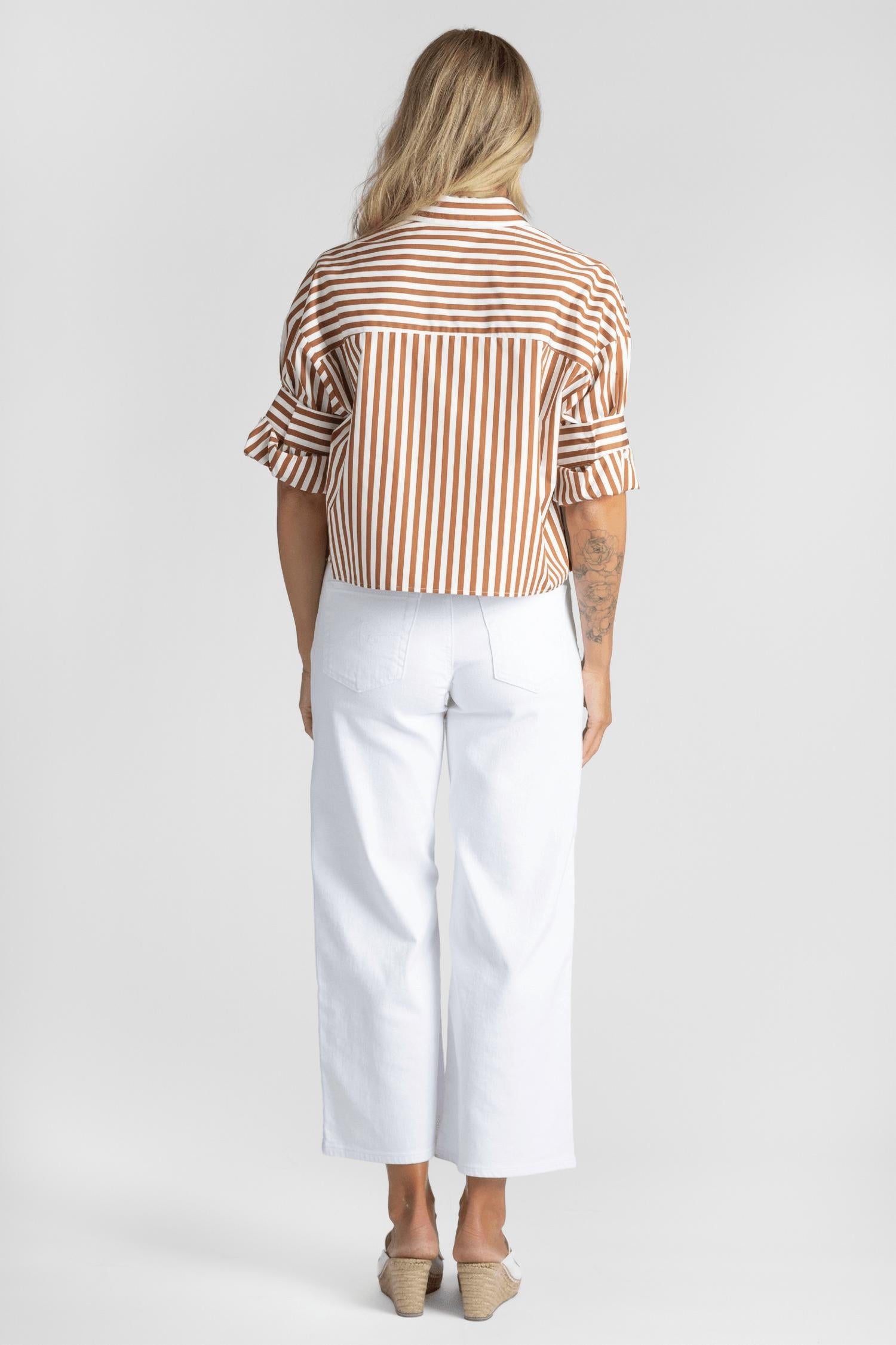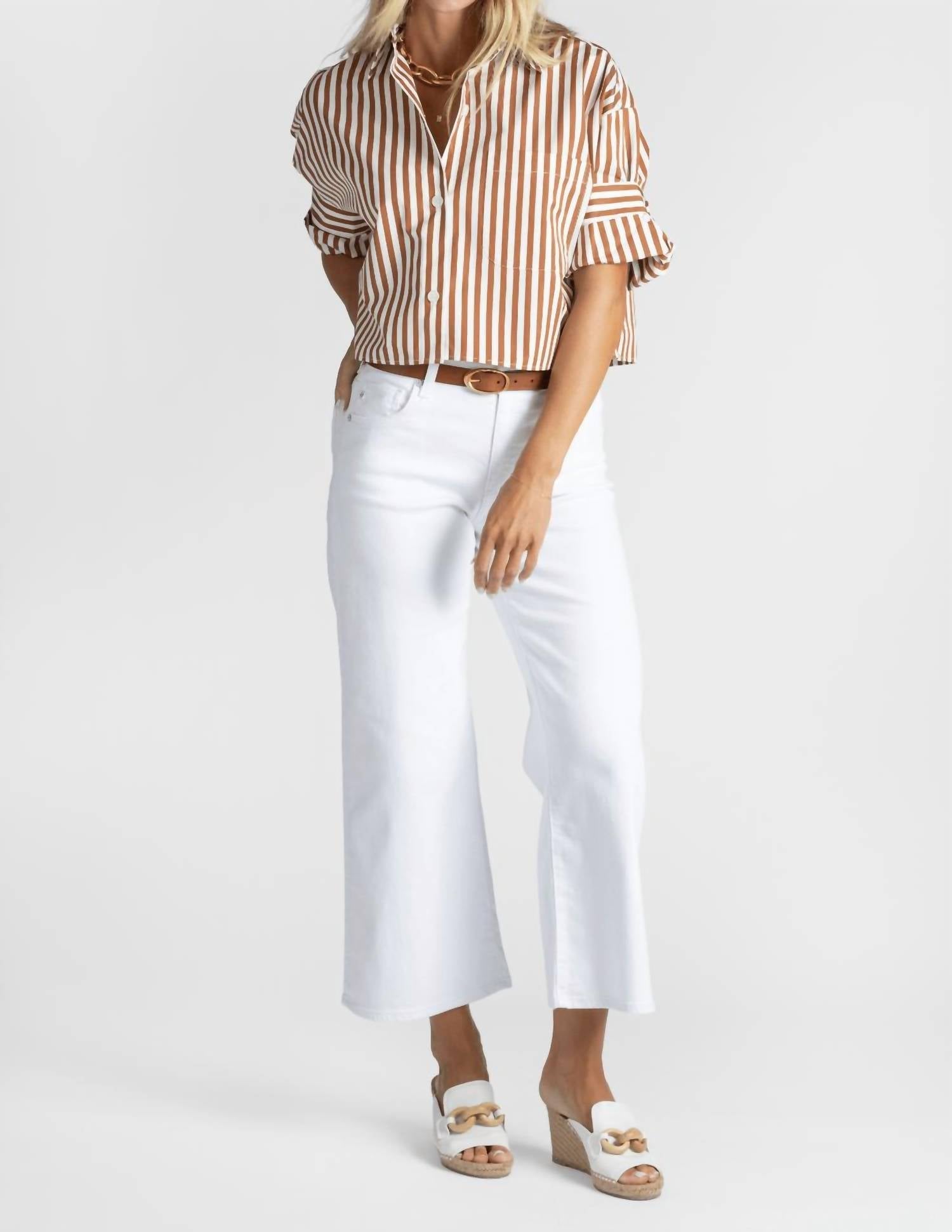 Introducing the Women's Saige Wide Leg Crop Jean by AG Jeans, crafted in Gallery White for a chic streetwear look. This piece features a mid-rise waist and a slim fit with a wide-leg silhouette, offering both style and comfort. Composition: 93% Cotton, 5% Polyester, 2% Elastane in cloud soft stretch denim. Closure: Zip closure with convenient pockets. Care: Machine wash and tumble dry. Inseam: 26 inches. Model is 5'8" and wears a size 25.