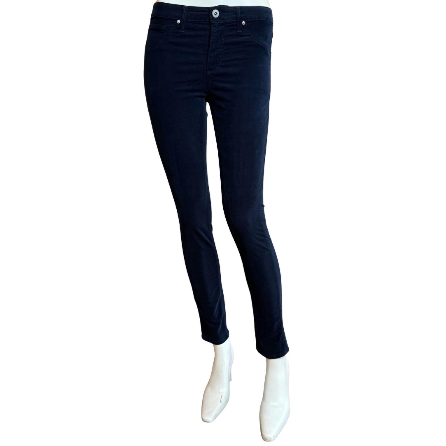 Step into sophistication with the Women's The Legging Ankle Super Skinny Pant by AG Jeans, crafted in the USA. These dark blue pants feature a mid-rise waist with a skinny leg style, designed from a 6.4 oz. velvet corduroy blend of 98% cotton and 2% polyurethane. The cropped ankle length and slim fit perfectly contour the body, with dimensions including a front rise of 8.5", knee opening of 12.5", bottom opening of 10", and an inseam of 28". Closure: Zip closure. Care: Machine wash.