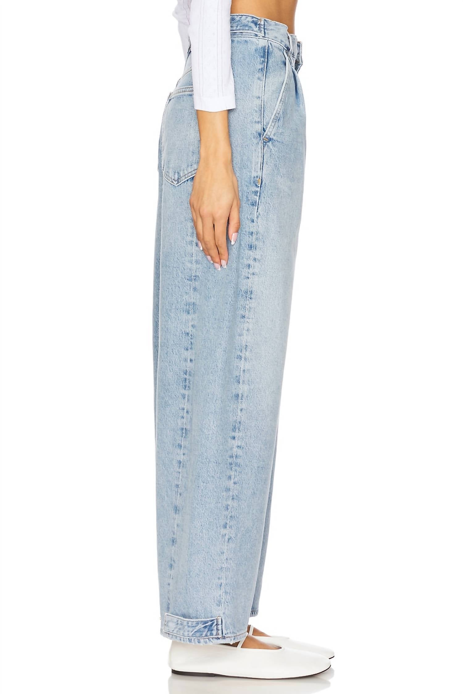 Pair these wide leg jeans with mules, slides or your favorite strappy sandals. These pants are crafted from 100% regenerative cotton and feature a zip fly with button closure for a classic look. Designed with side slant pockets and darting detail, they’re made from rigid denim for structure and durability. An adjustable hem with snap button closures adds versatility to the fit.