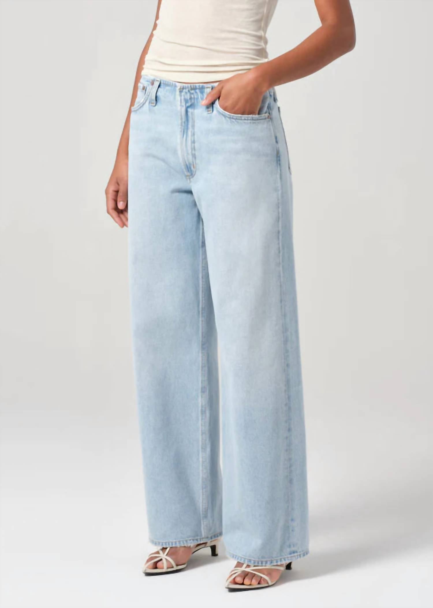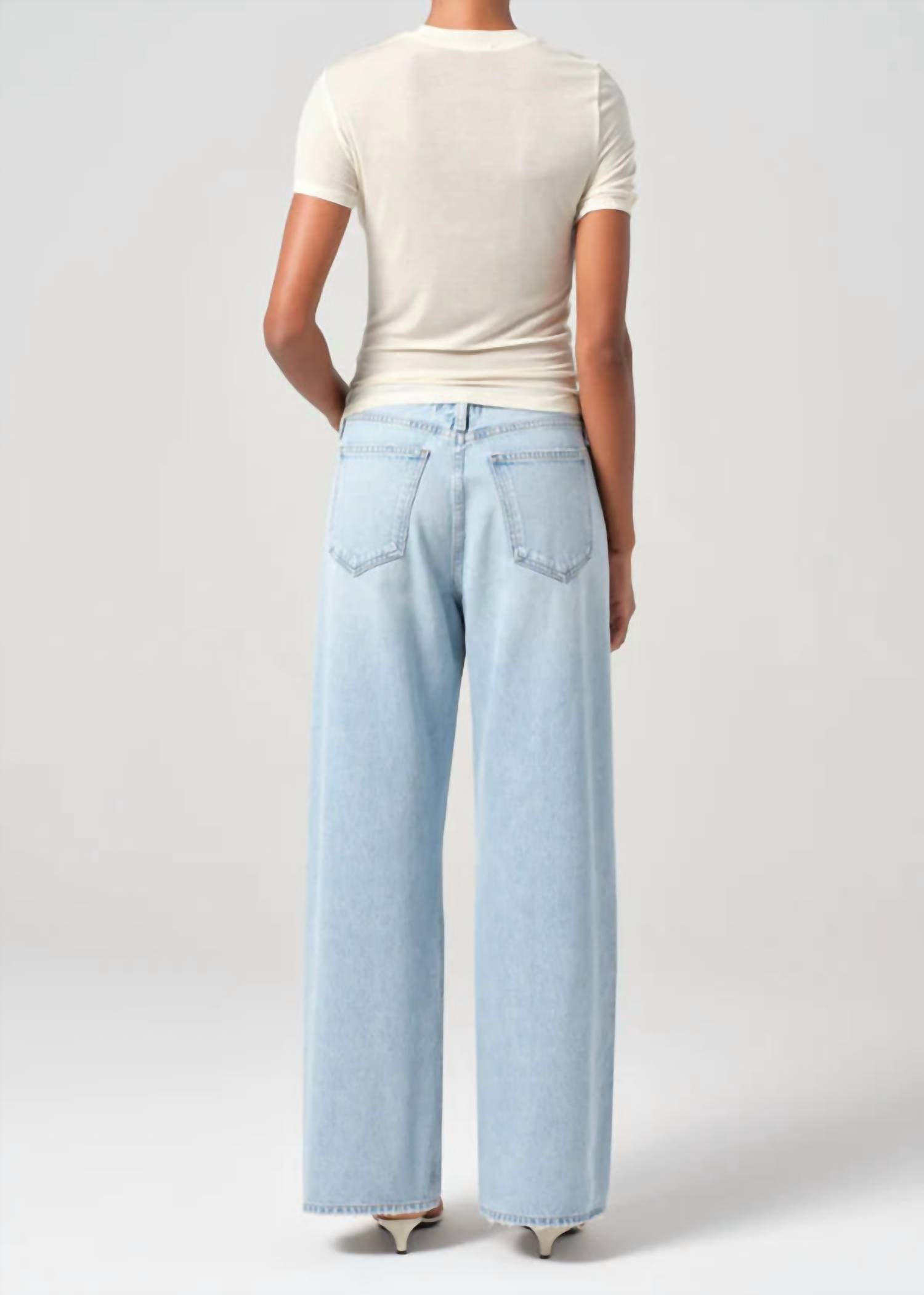 These must-have jeans are fit to perfection. Discover the Lex Low Slung Baggy Jean by AGOLDE, a stylish choice that blends comfort and effortless flair. Made from 100% Regenerative Cotton, these jeans promise ever-growing softness with each wear. Designed with an 11.25" rise and a 30.5" inseam, they feature a relaxed fit with a zip fly closure. Care for these jeans is simple; machine wash cold inside out with like colors and tumble dry low. Perfect for fall, this light wash, straight-leg denim is a versatile addition to your workwear collection. Model is 5'10" and wears a size 27.