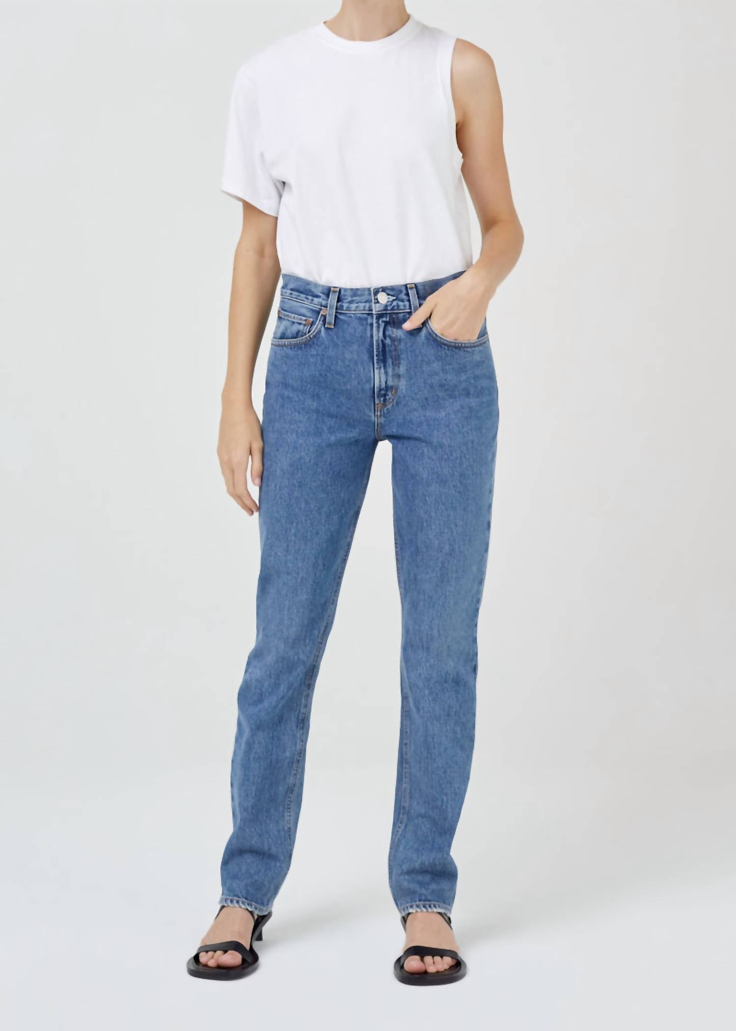 The perfect skinny jeans to wear with your favorite boots this season! Meet the AGOLDE Lyle Low Rise Slim Jeans in the color Hour, perfect for a minimalist vacation wardrobe. Crafted from a cotton blend(99% Cotton, 1% Recycled Lycra), these jeans offer a solid pattern with a skinny leg silhouette and a flattering mid-rise fit. The jeans showcase a button closure and a light wash, with a 10.25-inch rise and a 31-inch inseam designed for an elongating effect. Care is effortless with machine wash and tumble dry instructions, making them your go-to summer staple.
