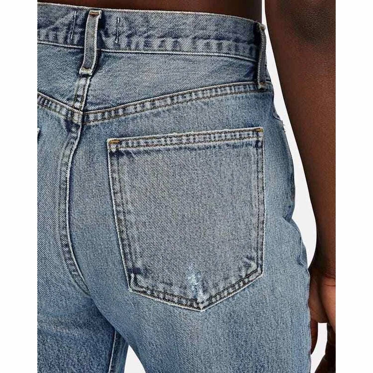 Discover the Mia Mid Rise Straight Distressed Jeans by AGOLDE, crafted for the fashion-forward woman who values style and comfort. These blue jeans feature a regular fit with a textured pattern, perfect for a summer streetwear look. Made from high-quality cotton, they boast a mid-rise waist and convenient pockets, ensuring both functionality and trendiness. Closure: Button closure. Care: Machine wash. Ideal for occasions such as a Thanksgiving holiday party.