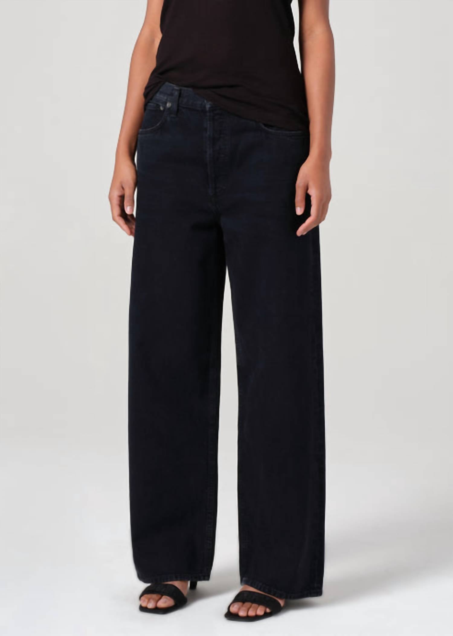 High-waist is here to stay and we especially love this style. This style is designed with a relaxed, oversized silhouette that sits low on the hips and flows into a straight, baggy leg for an effortlessly flattering fit. Made from regenerative and recycled cotton, it combines structure with a graceful drape. Subtle fading and light whiskering add a naturally worn-in character, enhancing its casual yet refined appeal. Pair it with a fitted tee and boots for balance, or style with an oversized blazer to create a modern twist on relaxed tailoring. Key details include a button fly closure, a 12 ½" rise, 30 ½" inseam, and a 21" leg opening.