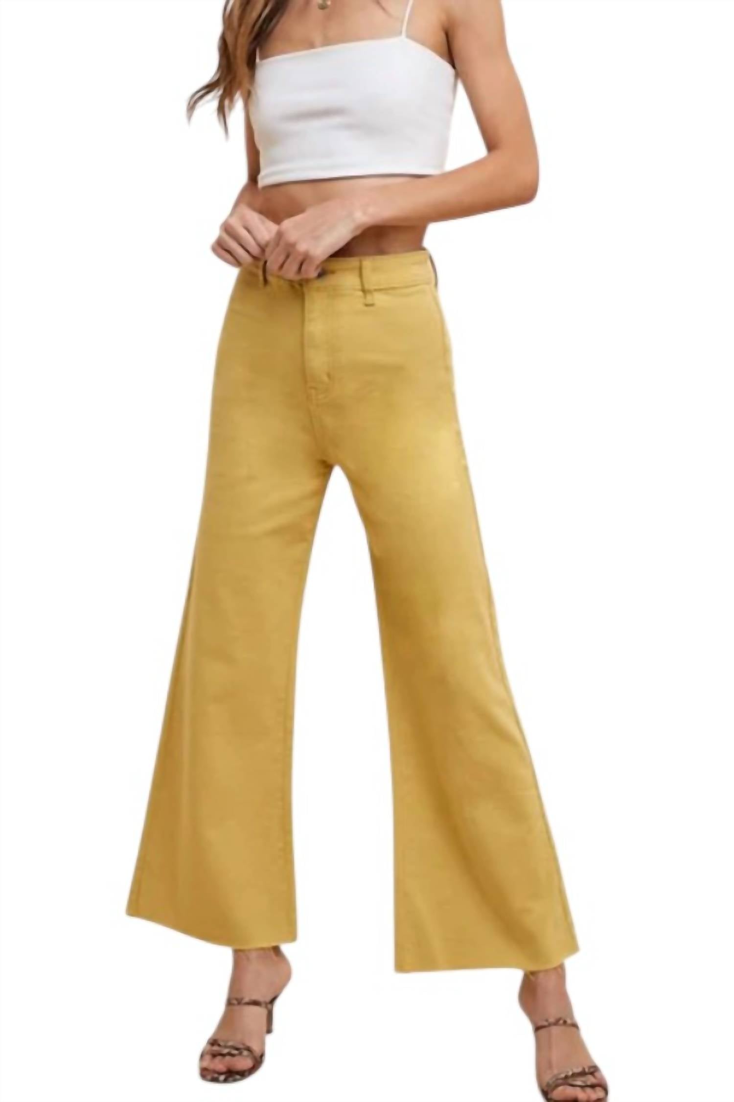 A flattering silhouette that's suprisingly versatile. The Moments Cropped Wide Leg Jeans by AnnieWear are the perfect blend of style and comfort, crafted from a 97% Cotton and 3% Spandex blend. These jeans feature a relaxed fit with a high-rise waist and wide-leg style, delivering a nostalgic 90s fashion vibe in a trendy Butter hue. They include convenient back pockets and a classic button closure. Care: Machine wash.