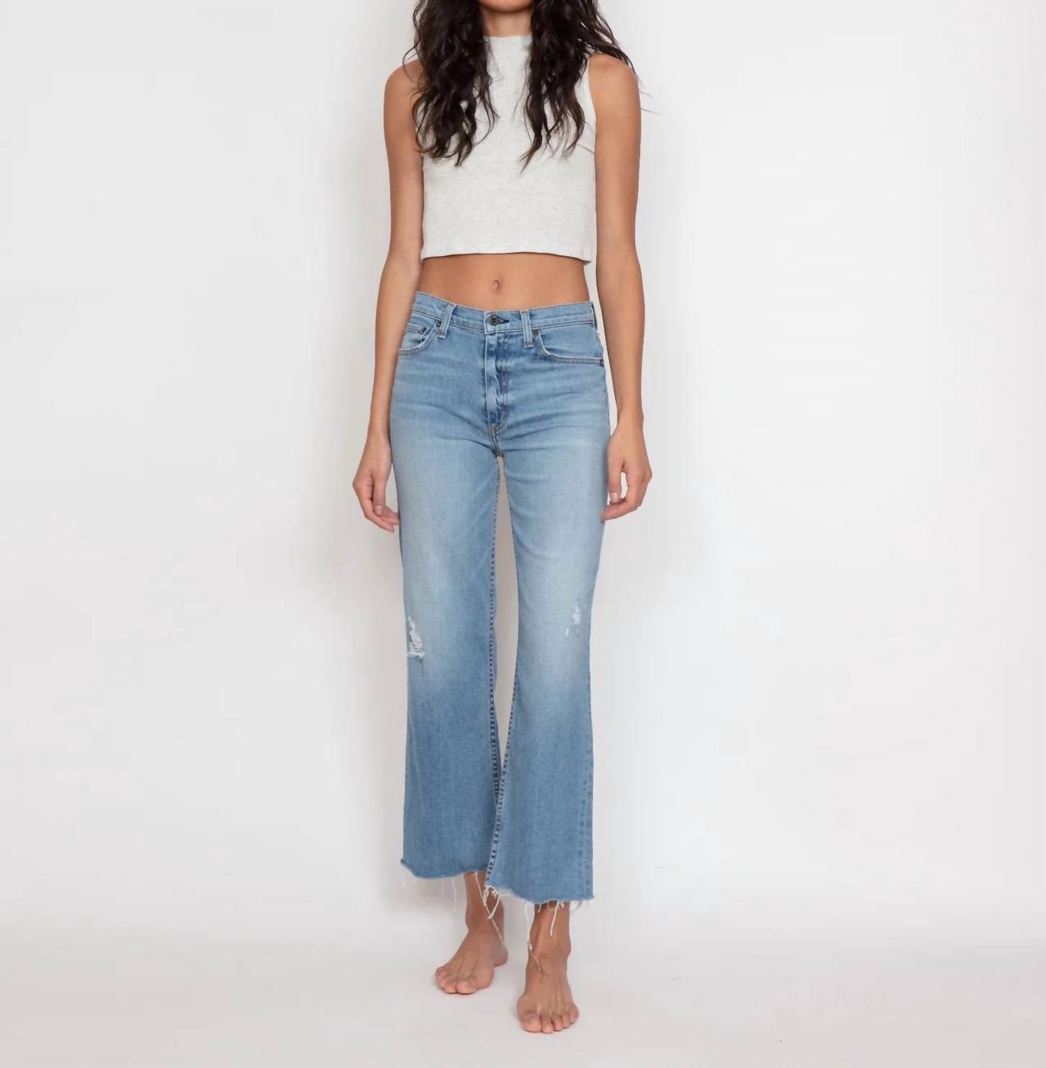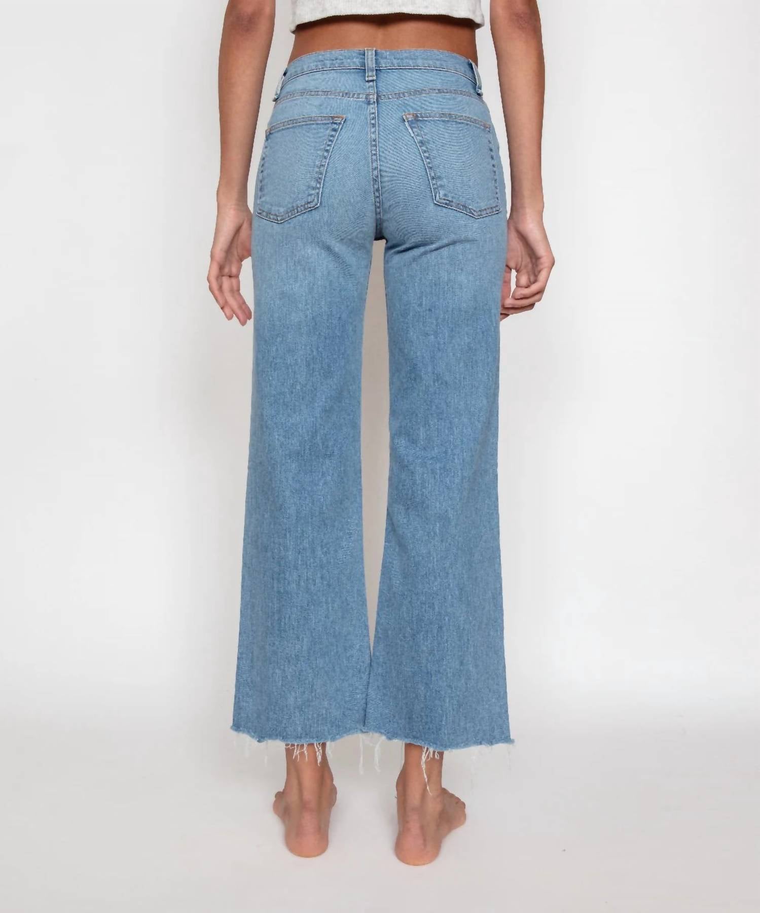 Introducing the Crop Wide Leg Jeans by ASKK NY, the perfect addition to your spring wardrobe in a stylish solid blue. These high-rise, regular fit jeans feature an 11" rise and a cropped inseam of 27", designed from a comfortable 98% Cotton, 2% PU Japanese stretch denim for ease of movement. With a frayed hem and a wide 20" leg opening, they capture the essence of 90s fashion while made in Los Angeles for quality assurance. Featuring a secure zip closure and functional pockets, these jeans are easy to care for with machine wash cold instructions—an ideal choice for a holiday party or Easter celebration.