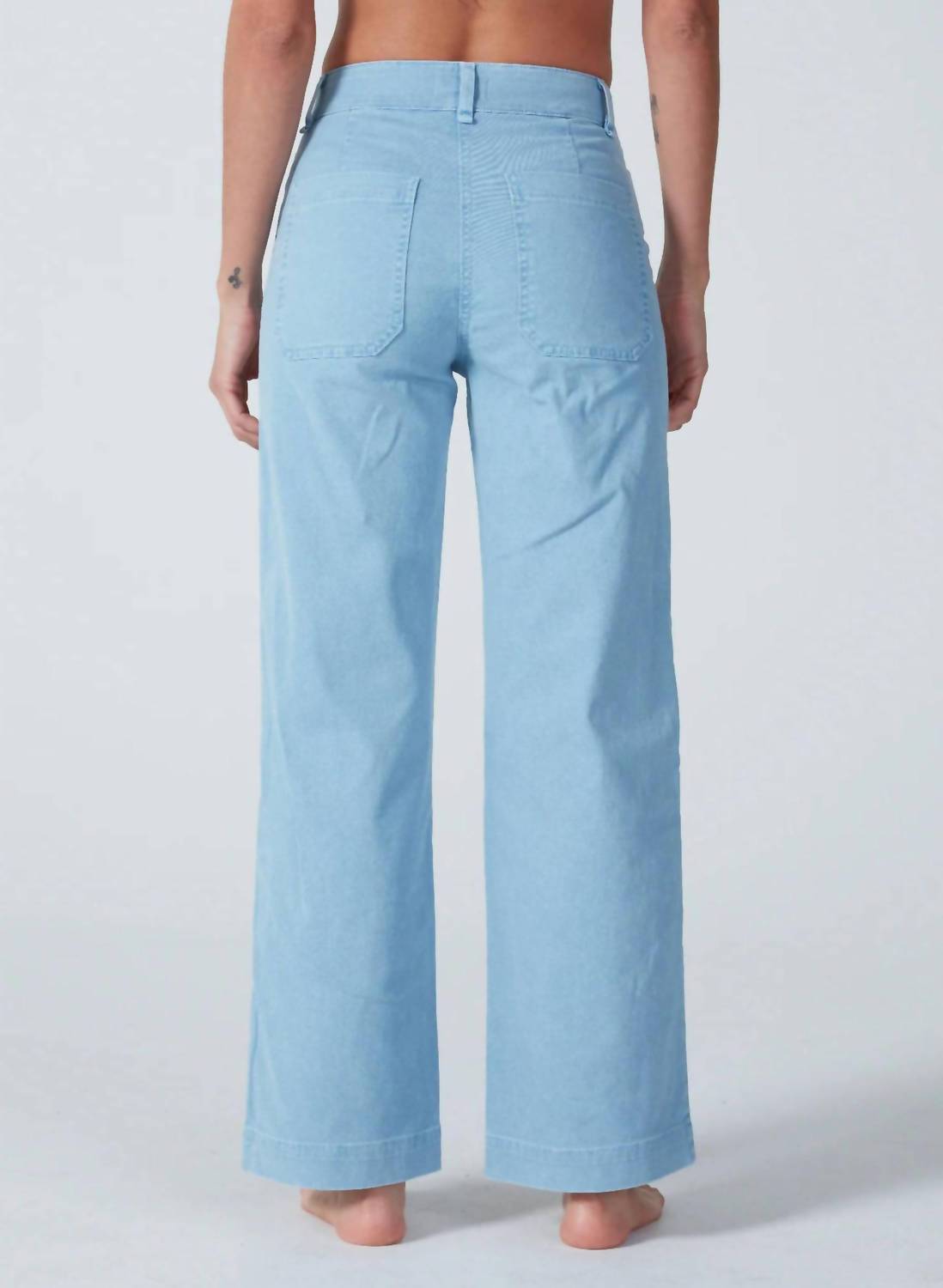 A flattering silhouette that's suprisingly versatile. Introducing the Sailor Washed Twill Jean by ASKK NY, designed for women who love a relaxed yet sophisticated style. These wide leg jeans are crafted in the USA from a light wash denim that comprises 98% washed cotton and 2% polyurethane, offering an 8 oz. stretch twill fabric that promises comfort with every wear. Featuring a high-rise fit, convenient front patch pockets, and a classic zip closure, these jeans are both practical and fashionable. Care for them with a machine wash in cold water and opt against tumble drying for longevity. Specifications include a 12" rise, 30" inseam, and a 20" leg opening.