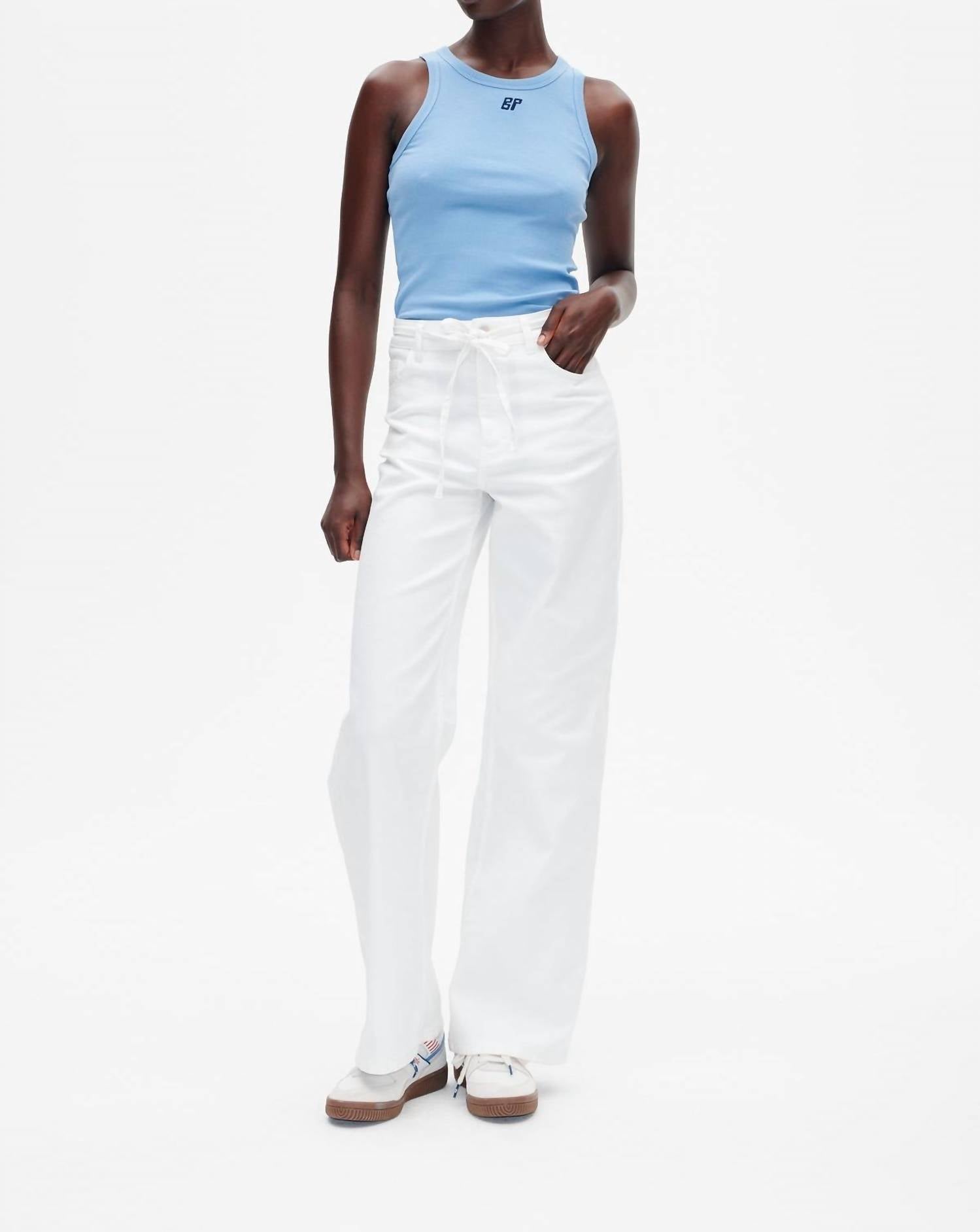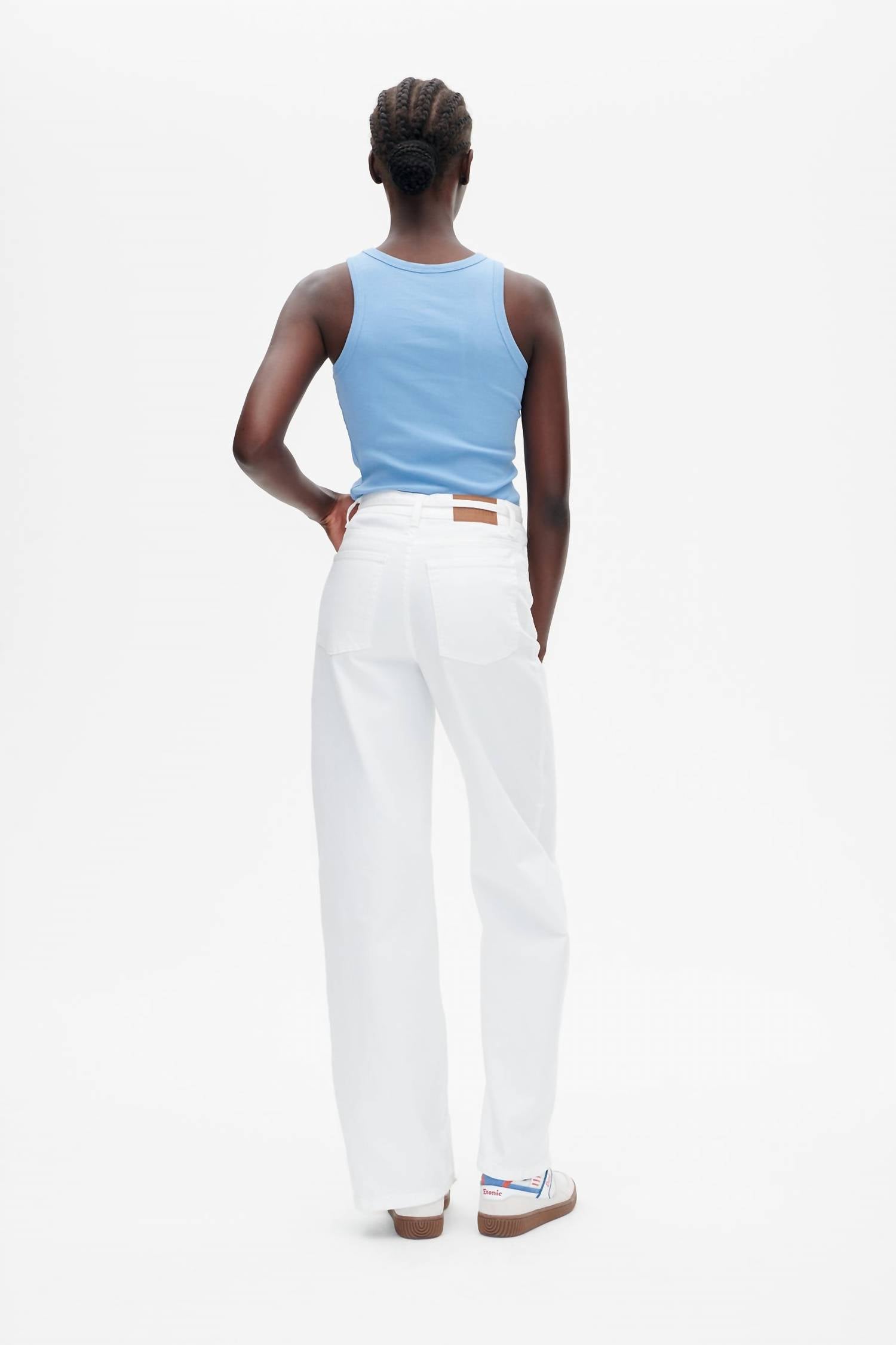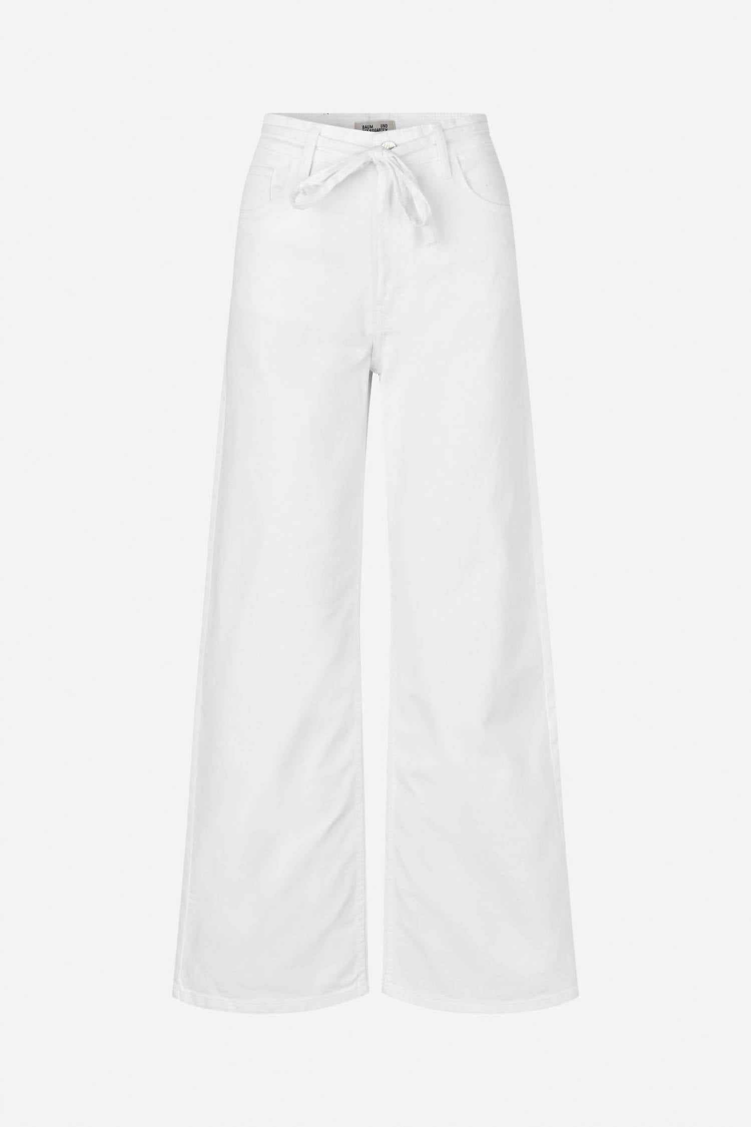 Just as cute as they are comfortable. Introducing the Ninie Jeans by Baum und Pferdgarten, crafted from a comfortable white denim blend of 97% cotton and 3% elastane, perfect for fall. These high-waisted trousers feature a relaxed fit with a stylish wide leg and a secure waist tie. They are finished with a front button and zip closure and include functional pockets for added convenience. For care, simply machine wash and tumble dry, making these jeans an effortless addition to a minimalist wardrobe.