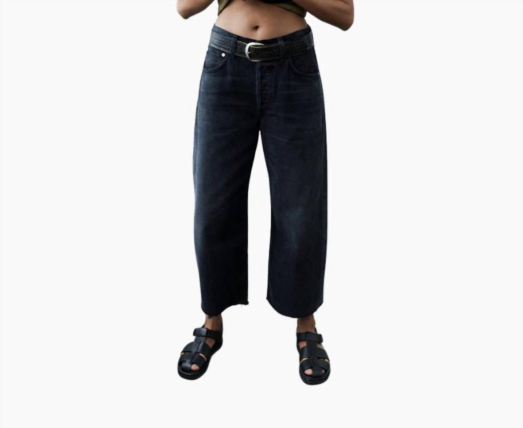 Pair these wide leg jeans with mules, slides or your favorite strappy sandals. Introducing the Ayla Raw Hem Cropped Jeans by Citizens of Humanity, an elevated twist on the baggy silhouette. These jeans in the Bronson wash feature a 12 3/8" rise and a 27" inseam. Made from 100% regenerative cotton, they boast a button fly closure and a soft, relaxed fit. Care: Machine wash cold inside out with like colors, tumble dry low. Made in Turkey with imported materials.