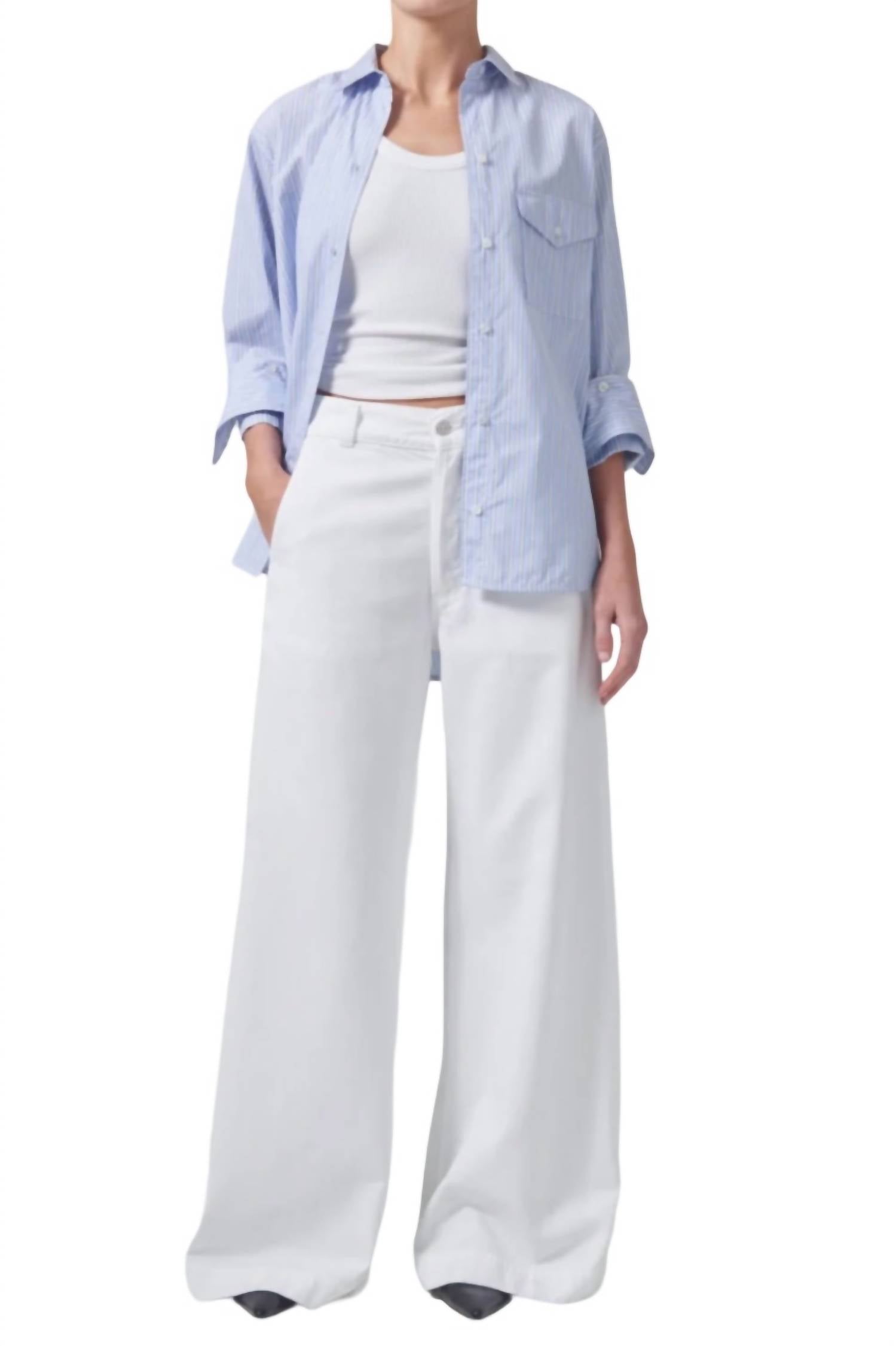 If you're looking for boot-cut, this is the jean for you. Slouch Boot, cut in an ultra-fluid denim with sophisticated trouser detailing. 65% Lyocell 35% Cotton. True to Size.