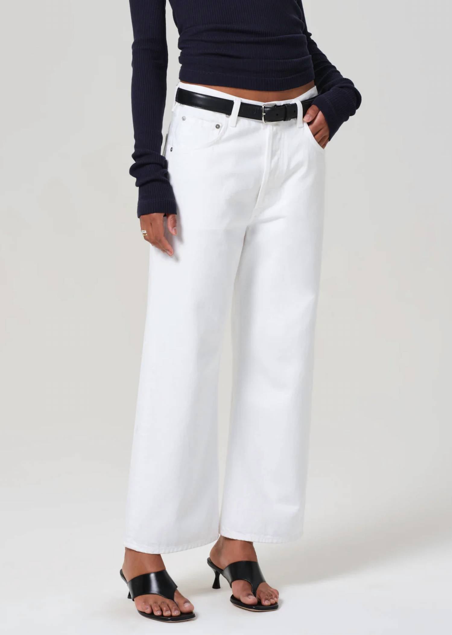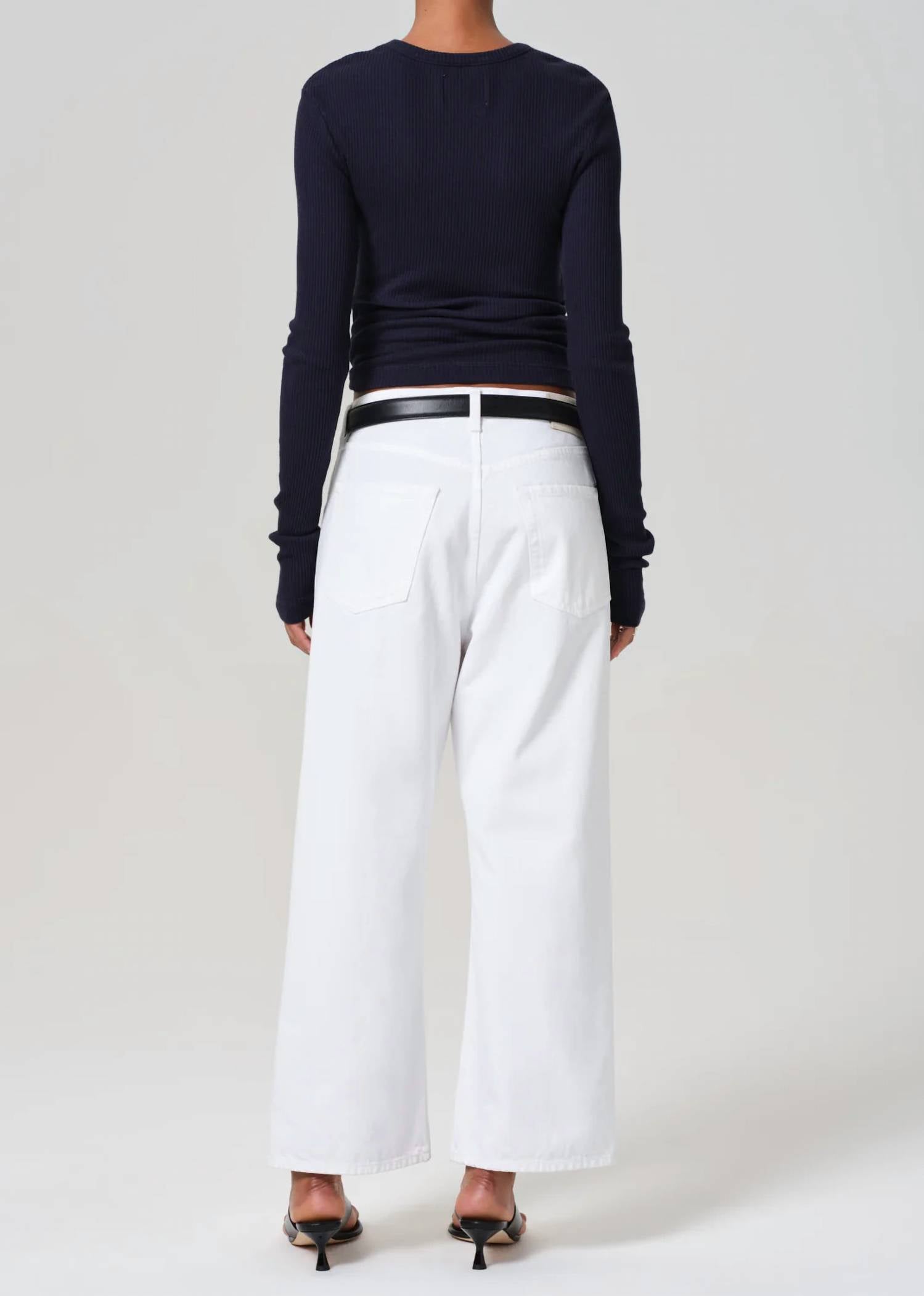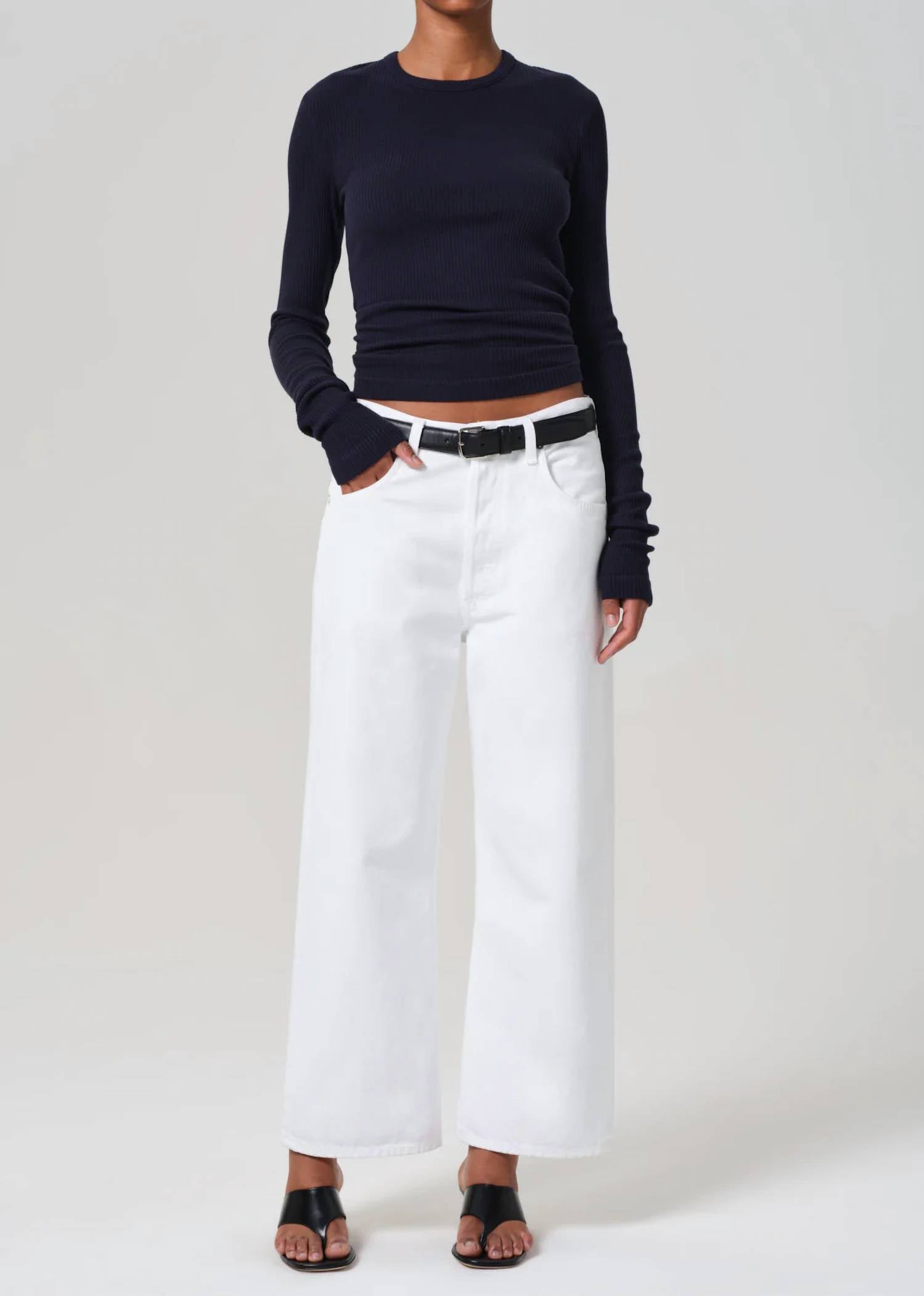 A flattering silhouette that's suprisingly versatile. The Gaucho is a vintage inspired silhouette that sits high on the waist with an easy, relaxed top block cut with an ultra-cropped inseam with a voluminous wide leg. This fit is true to size. Looks Like: True clean white denim Feels Like: Rigid, non-stretch denim with an authentic feel