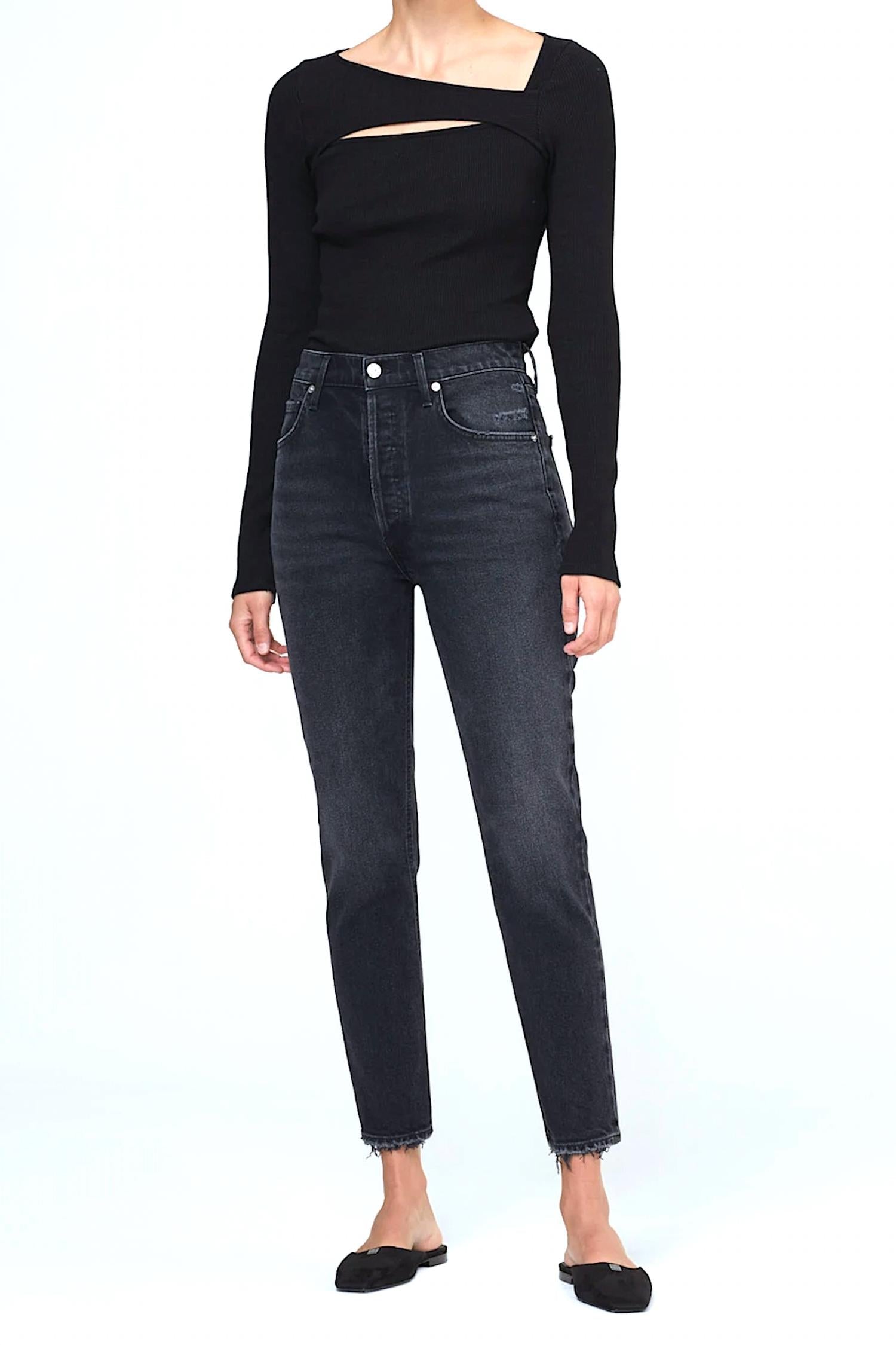 Discover the Jolene High Rise Straight Jean by Citizens of Humanity, crafted for a vintage slim fit in a stormy solid shade. These jeans are made from a 98% cotton and 2% polyurethane blend, featuring a button fly closure for an effortlessly chic look. The dimensions include an 11.5" rise, 27" inseam, and a 14" leg opening, perfect for pairing with sneakers or ankle boots. Effortless to care for, simply machine wash cold and tumble dry. Imported.