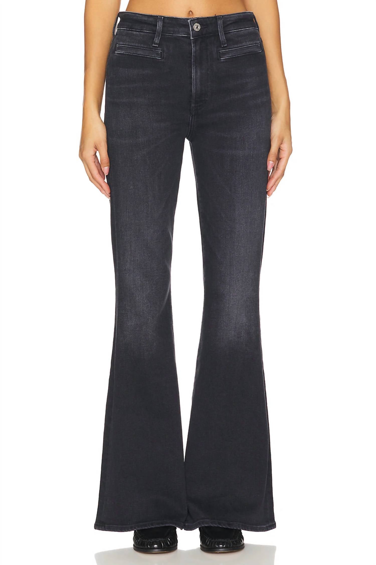 A flattering silhouette that's suprisingly versatile. Discover the Lilah Flare Jean by Citizens of Humanity, a high-rise staple in a classic medallion hue. Drawing inspiration from the 1970s, these jeans are designed to elongate your legs with a flattering slim fit through the thighs that leads to flared hems. Featuring a button closure with a front fly zip, faux front pockets, and back slip pockets with intentional light whiskering and fading. Crafted for ease, these jeans require machine wash and line dry care. Model is 5'9" and wearing a size 26.