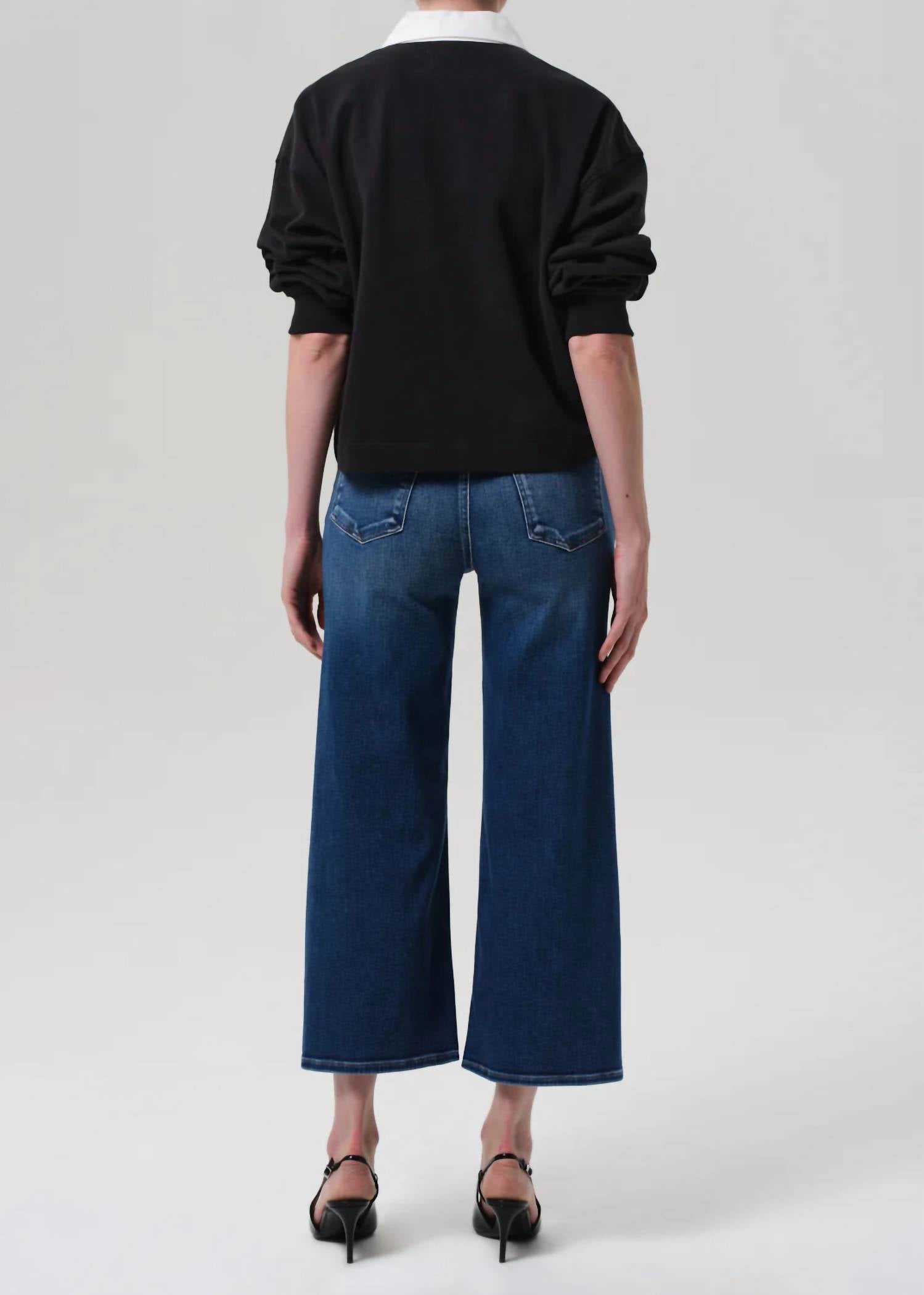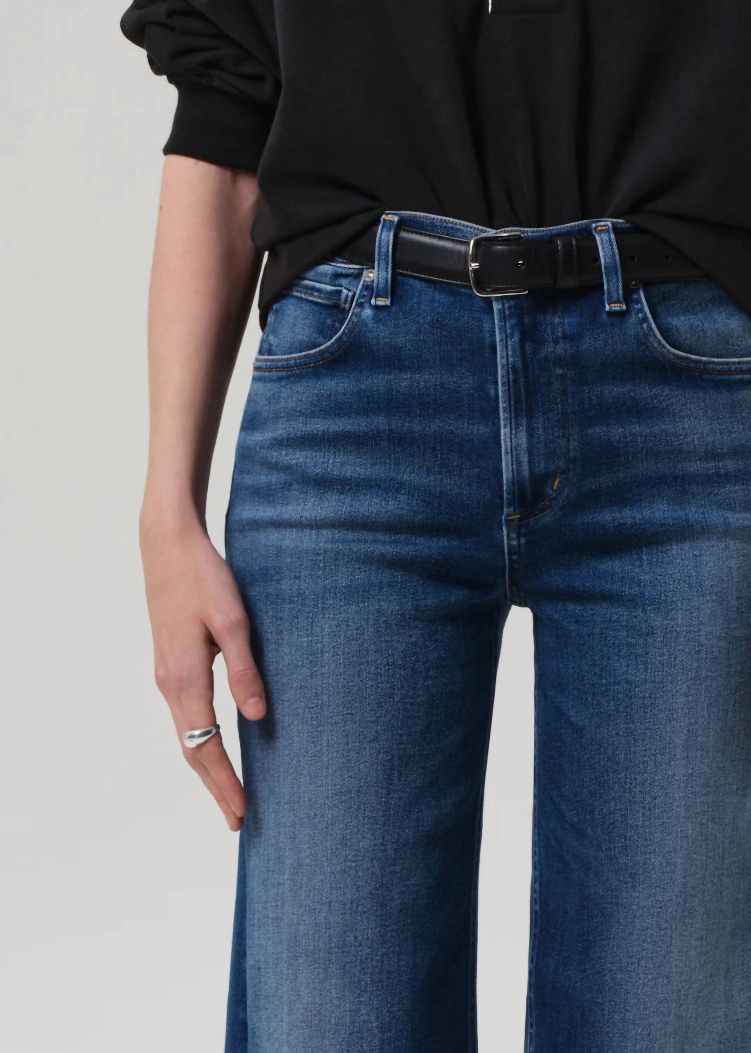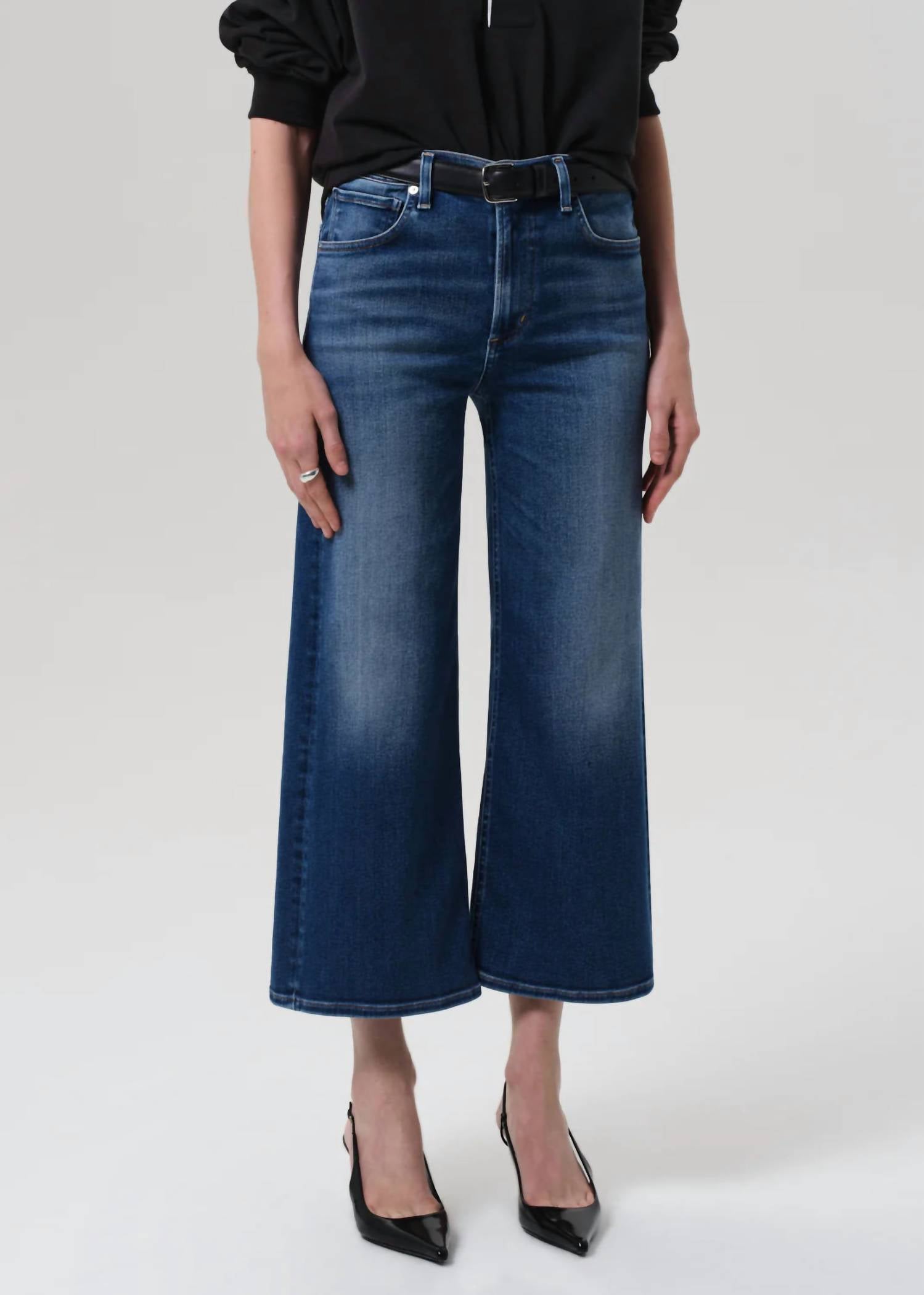 Comfortable and stylish, we love this cropped jean for all of the obvious reasons. Discover the Lyra Wide Leg Crop Jean by Citizens of Humanity, a chic embodiment of vintage-inspired design perfect for any minimalist summer wardrobe. With a high rise and a relaxed fit, these women's jeans feature a wide leg style with a 27" cropped inseam. Crafted in Turkey from a soft cotton blend with a touch of stretch, the medium indigo wash with subtle fading and whiskering offers a sophisticated finish. Closure: Zip fly. Care: Machine wash cold inside out with like colors, do not bleach, tumble dry low.
