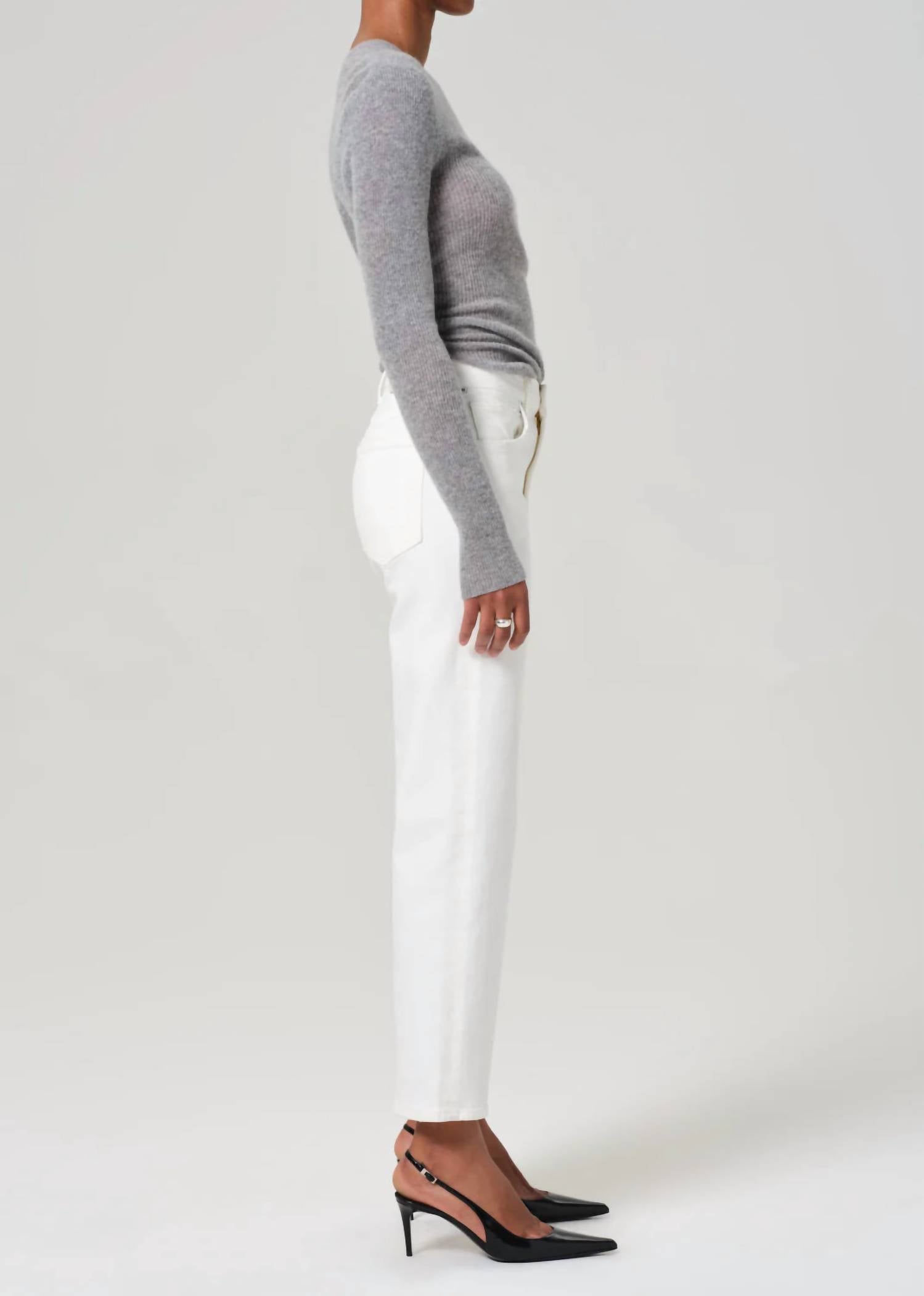 Meet the Palma Straight Jeans by Citizens of Humanity, a staple from their Soft Stretch collection that promises unparalleled comfort and fit. These white jeans feature an 11" high rise and a 27" inseam, with a classic straight leg and a 17" leg opening. Crafted in Turkey from 94% Cotton, 4% Polyester, and 2% Elastane, they offer a signature soft stretch that holds its shape. Closure: Zip fly. Care: Machine wash cold inside out with like colors and tumble dry low. Model is 5'10" and wearing a size 27.