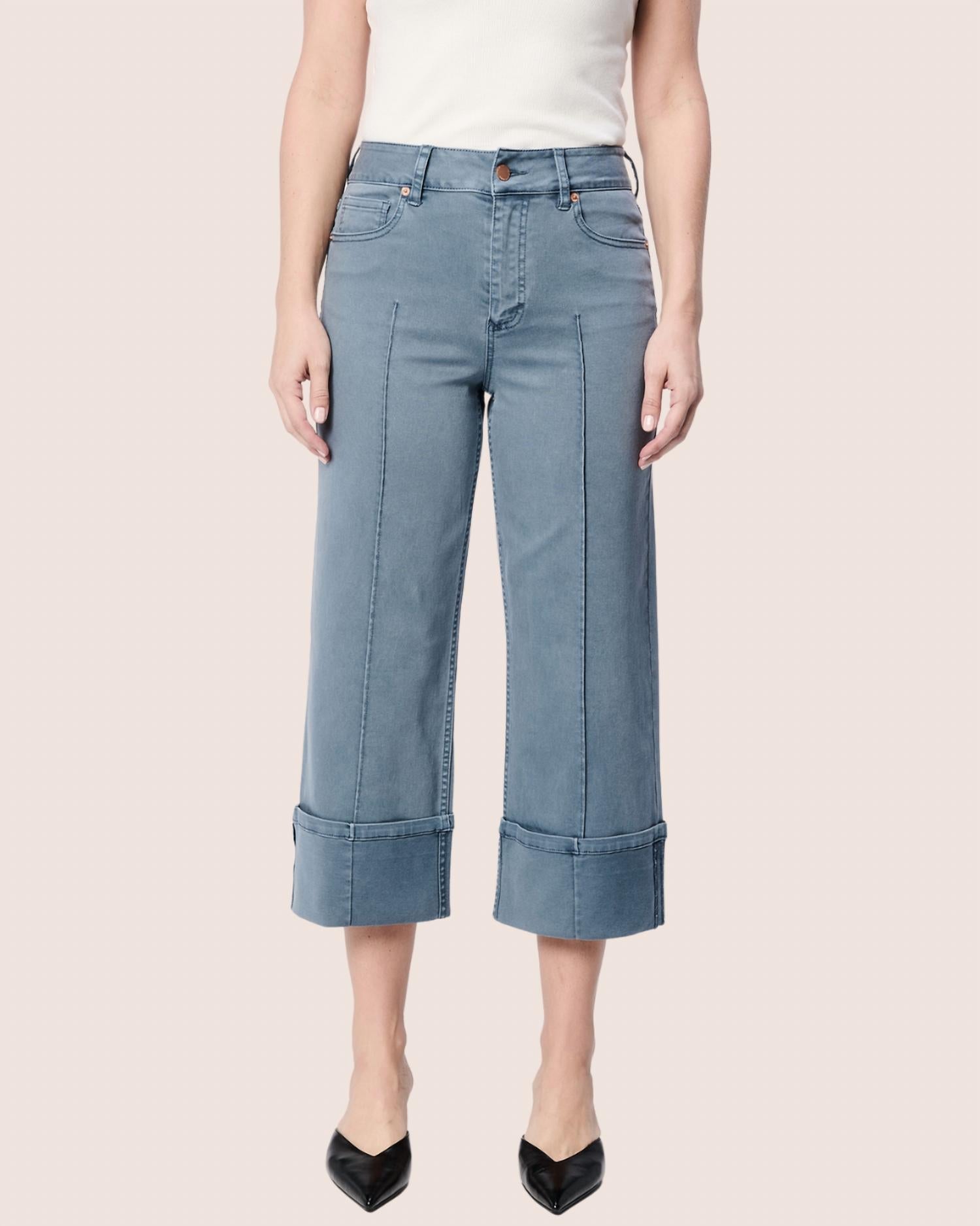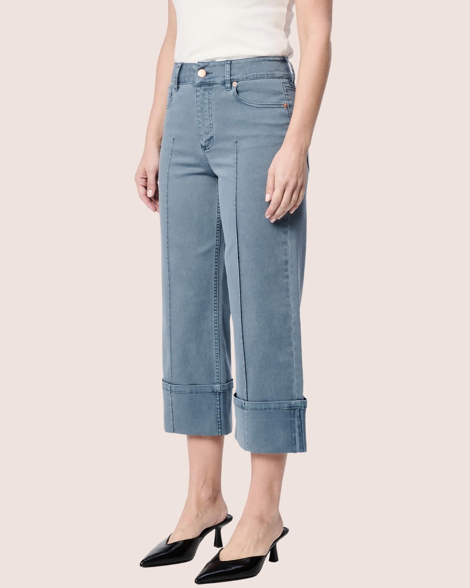 Enhance your wardrobe with this trendy cropped number, designed to blend style and practicality. The comfortable fit allows for easy all-day wear. The perfect length to pair with your favorite mules. Introducing the Holly Cropped Jean by DEAR JOHN DENIM, a staple in any wardrobe with style and comfort in mind. These women's jeans feature a high rise and a slim, straight leg fit, showcasing a modern streetwear trend perfect for music festivals. Made from 90% Cotton, 8% Polyester, 2% Spandex, they include convenient pockets and a secure zip closure. The Stormy color option boasts a chic tacked cuffed look with a seam down the front. Front rise measures 12", leg opening is 19.5", and the inseam is 30" for size 27. Care is simple with machine wash and tumble dry instructions.