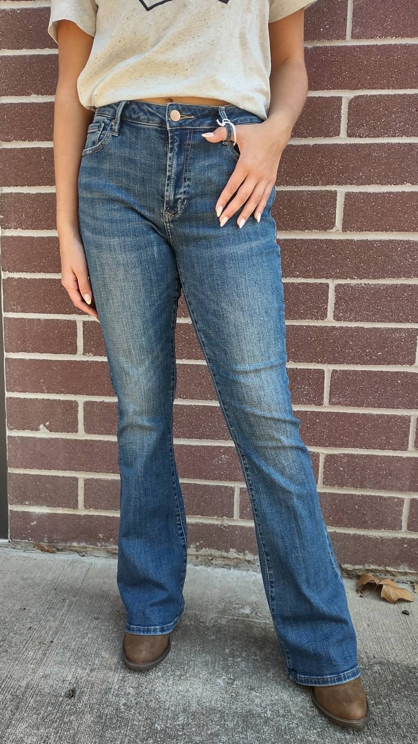If you're looking for boot-cut, this is the jean for you. Experience classic style with the Jaxtyn Bootcut Jeans by Dear John Denim. These high-rise jeans are crafted from a comfortable blend of 98% cotton and 2% spandex and designed with a flattering bootcut leg. The denim features hip whiskering and tuck washing, plus a five-pocket style that’s both practical and stylish. With a zip fly and button closure, these jeans are imported and easy to care for—simply machine wash cold and tumble dry low. Dimensions: 9.5" front rise, 19" leg opening, 33" inseam (size 27).