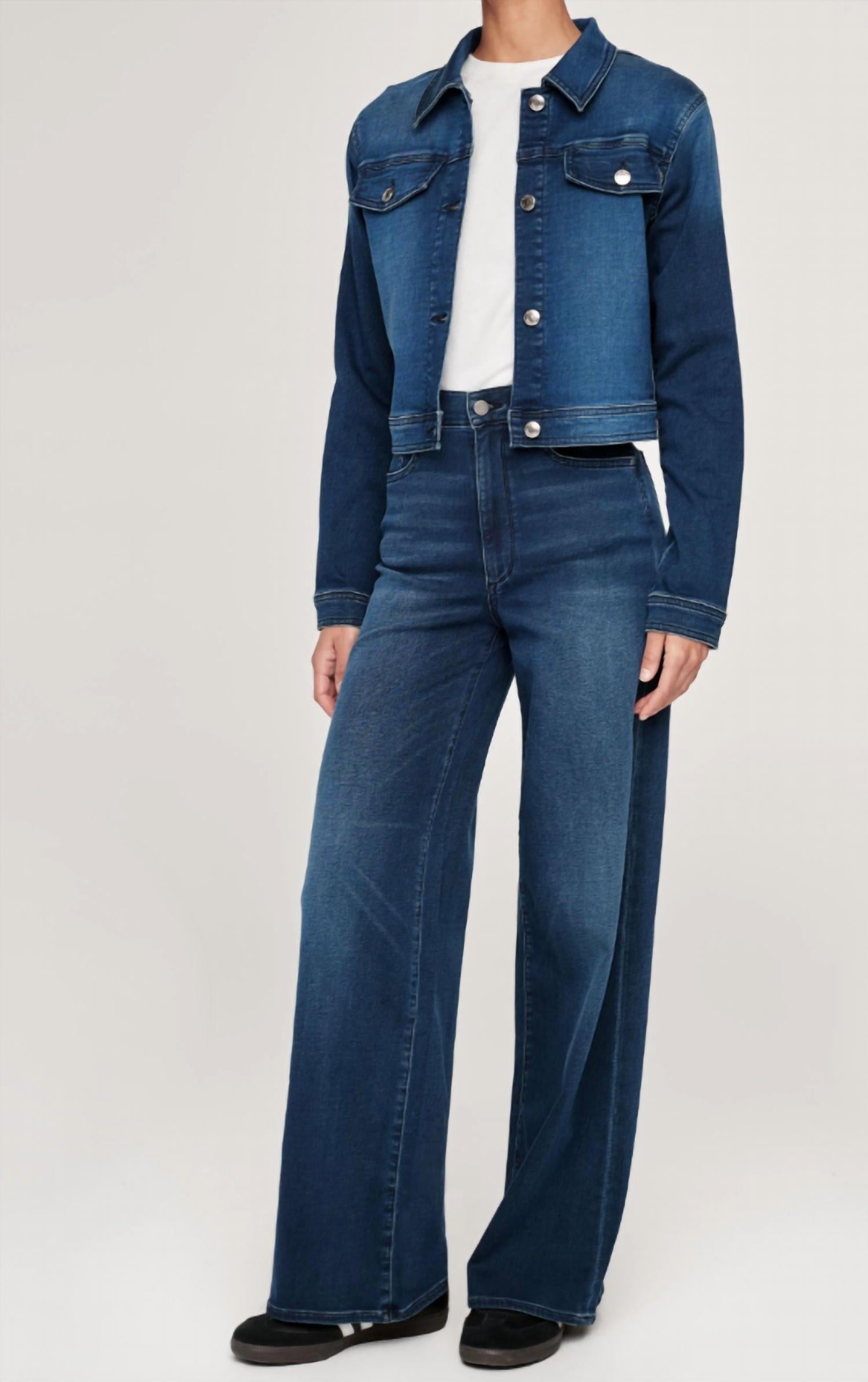 Just as cute as they are comfortable. Hepburn is a vintage high-rise that is fitted through the waist and seat, tapering outward from the thigh for a wide leg with a 32' inseam. Stream is a rich dark indigo with fading and whiskering. It features antique silver hardware, tonal stitching, clean hem and a black back patch.