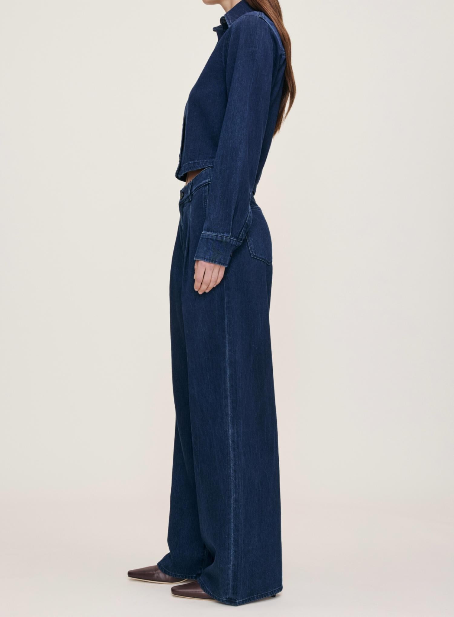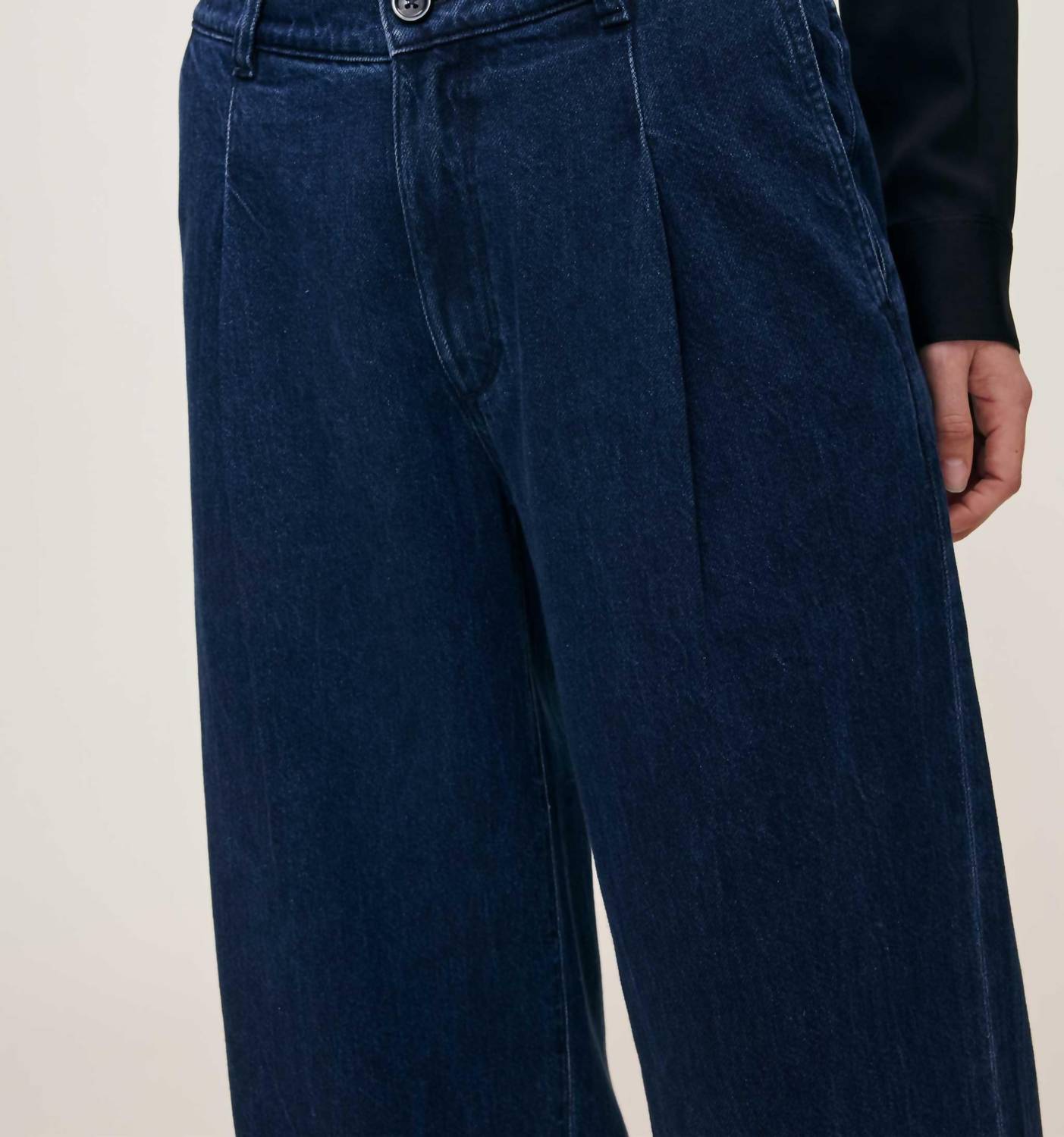 Just as cute as they are comfortable. Style effortlessly with the Isabel Wide Leg Straight Vintage Jeans from DL1961, offering a relaxed fit for a modern take on 90s fashion. Crafted from a 65% Cotton, 35% TENCEL™ Lyocell blend, these jeans feature a low rise with a 10.38-inch rise and a 31.5-inch inseam. The dark indigo denim in Rain Storm showcases a clean hem, brown horn buttons, and a black back patch for added flair. Designed with a solid pattern and wide-leg style, these jeans are perfect for spring travels or New Year's Eve occasions. Closure: Button closure. Care: Machine wash. Model: Amy is 5'9" and is wearing a size 25.