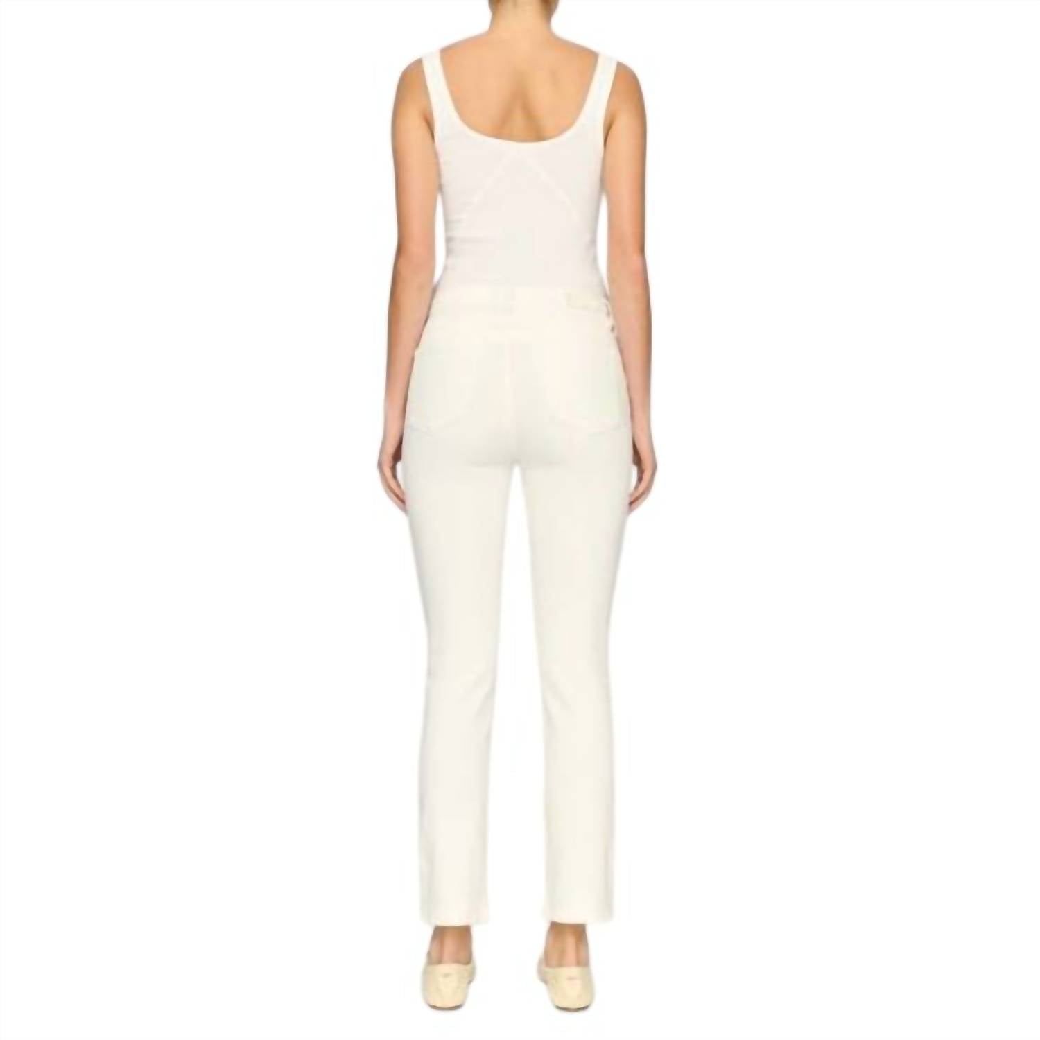 We especially love this cropped jean with a cute pair of slides or sandals. Discover the Mara Straight Mid Rise Ankle Jeans by DL1961, a sophisticated addition to any wardrobe. These ankle-length jeans feature a mid-rise and slim fit with a straight leg design in a chic solid white color. Crafted from a composition of cotton, they offer practical pockets and a secure button closure. For easy maintenance, simply machine wash and tumble dry as needed.