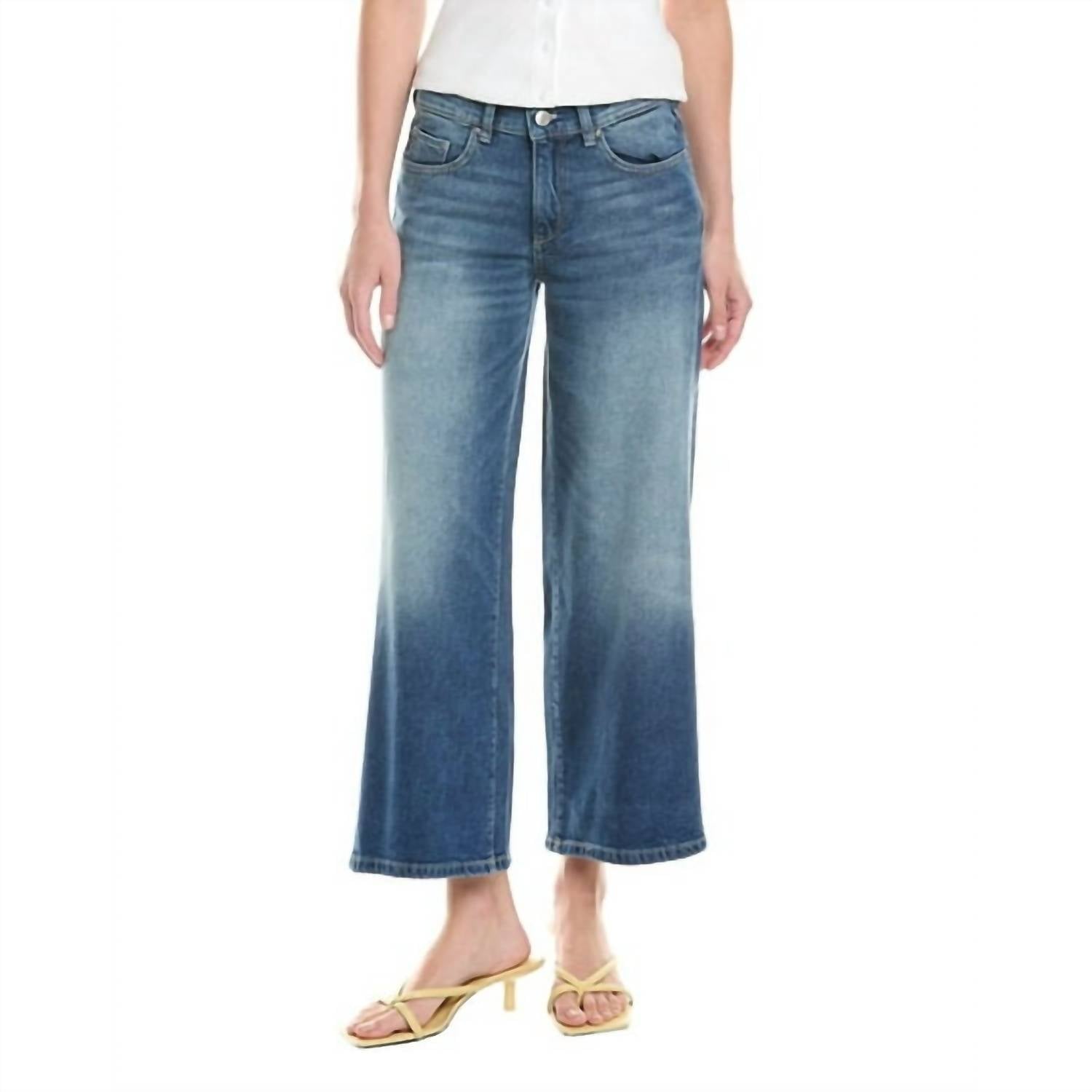 Comfortable and stylish, we love this cropped jean for all of the obvious reasons. These ankle-length wide-leg jeans feature classic five-pocket styling, belt loops, fading, and whiskering details for a timeless look. Designed with a 10-inch front rise and 13.5-inch back rise, they have a leg opening circumference of approximately 21 inches and an inseam around 27 inches. Crafted from a sustainable fabric blend of 79% cotton, 20% recycled cotton, and 1% Lycra, they offer comfort and stretch. Finished with a zip fly and button closure, these jeans are machine washable for easy care.