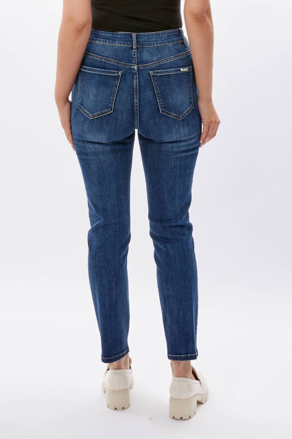 Introducing the High Waisted Ankle Length Jean by Frank Lyman, a delightful blend of style and comfort in a striking dark blue denim. These high-rise trousers offer a slim fit and a straight leg style, with a practical zip closure for functionality. Crafted from a mix of 73% Cotton, 23% Poly, 3% Rayon, and 1% Elastane, they feature convenient side pockets for added utility. With an approximate inseam length of 28" (71 cm), these medium wash jeans should be hand washed and line dried for optimal care.