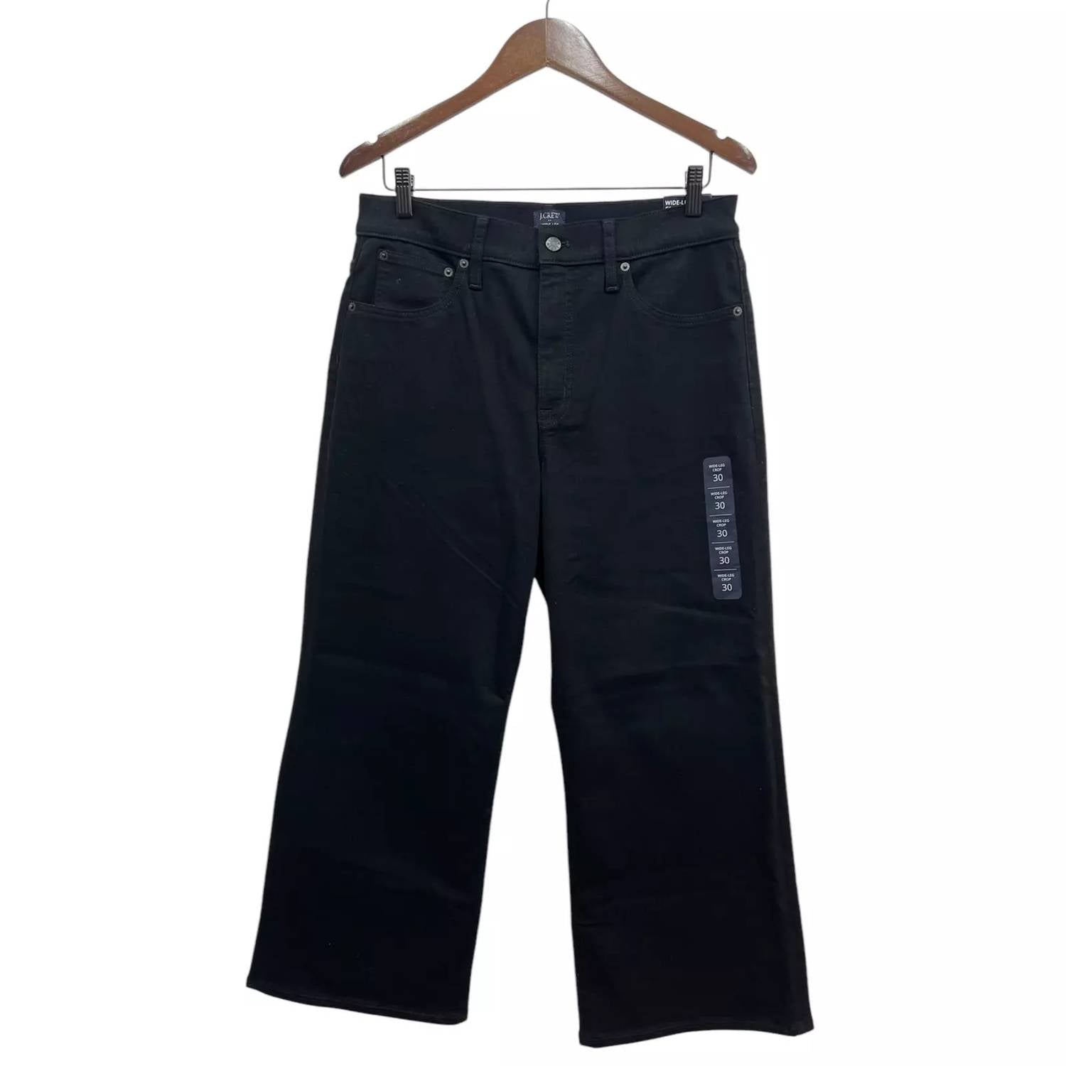 Pair these wide leg jeans with mules, slides or your favorite strappy sandals. Step out in style with the Cropped Wide-leg Jean by J.Crew, offering the perfect blend of comfort and sophistication in classic black. Crafted with a composition of 76% cotton, 22% recycled polyester, and 2% elastane, these jeans provide all-day stretch with just the right amount of give. Designed with a high-rise waist and featuring a zip fly with button-tab closure, they boast traditional 5-pocket styling for added functionality. The slim fit through the hip and thigh transitions into a chic slim wide-leg, complete with an inseam of 25 inches and a rise of 11 inches. Care for these jeans easily with machine washing and tumble drying, making them a practical yet fashionable choice for your wardrobe.