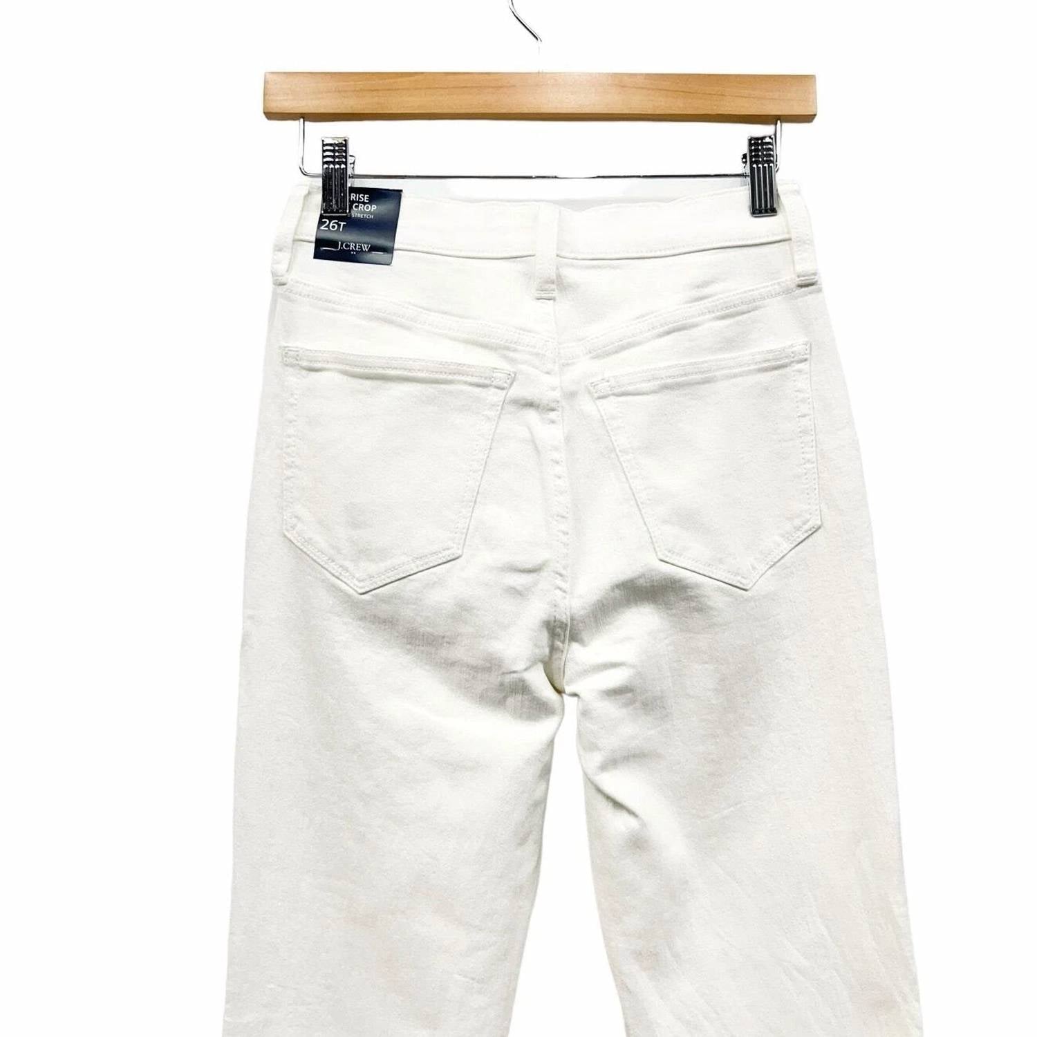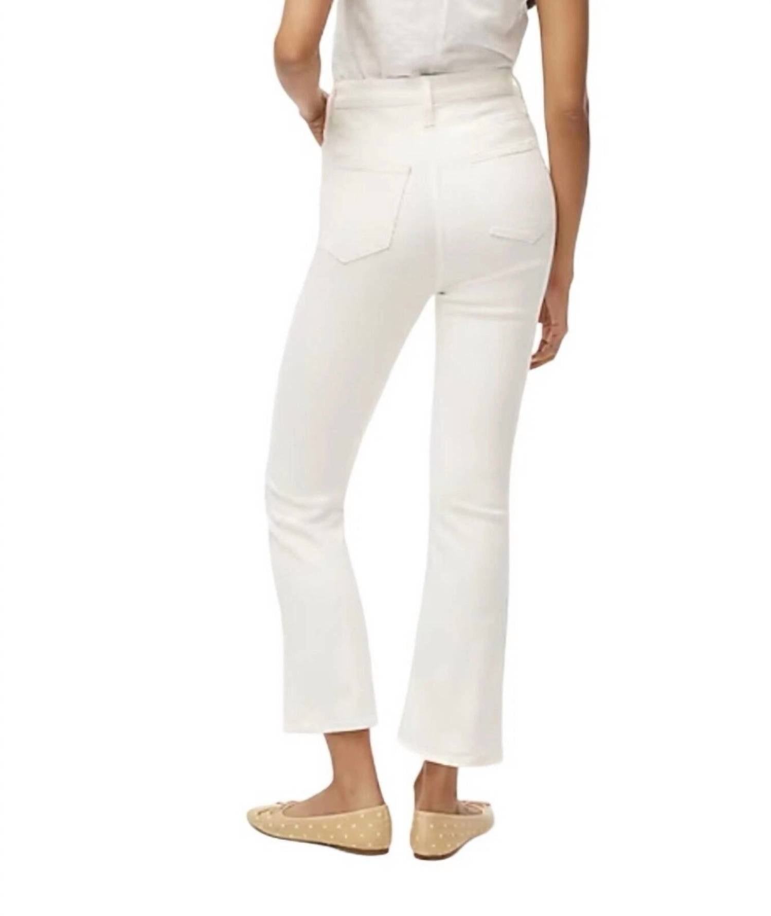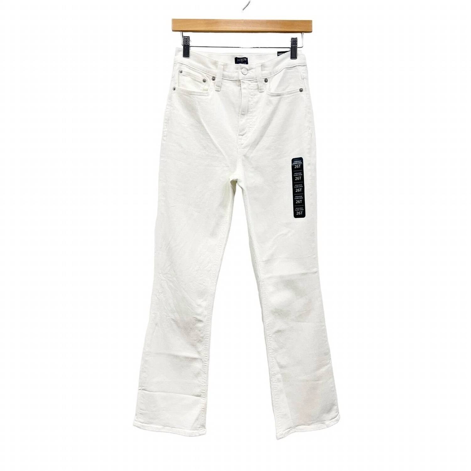 Fit to perfection, we love these high-waist jeans and you will too. Elevate your denim game with the J.Crew High-rise Flare Crop Jean in All-day Stretch, a perfect blend of comfort and style in crisp white. Designed with a solid pattern, these jeans are composed of 90% cotton, 8% recycled polyester, and 2% elastane, offering medium stretch for both structure and flexibility. This high-rise, flared leg style features a zip closure and traditional 5-pocket styling, sitting slim at the hip and thigh. For easy care, simply machine wash and tumble dry, with approximate flat measurements including a 13-inch waist, 10.5-inch rise, and 28-inch inseam.