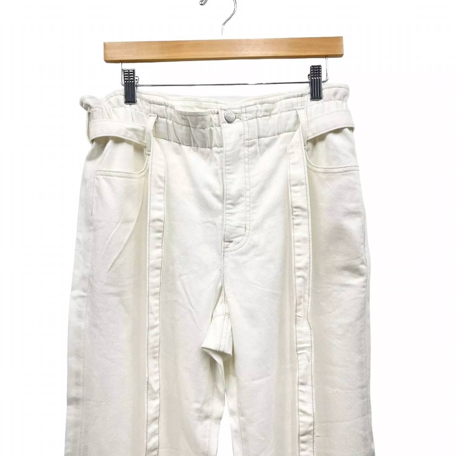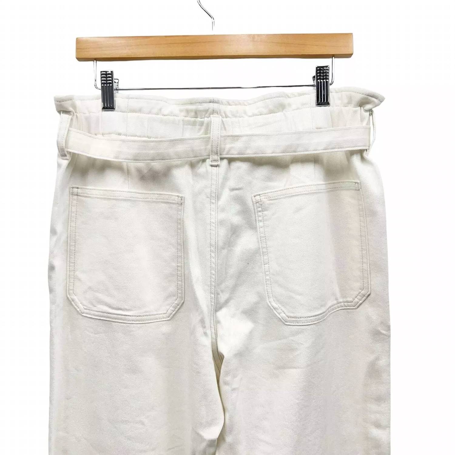 Just as cute as they are comfortable. Elevate your wardrobe with the Paper-bag Jean by J.Crew, a sophisticated piece in Soft White. Designed for comfort and style, these jeans feature a cropped, slim wide-leg with a fitted silhouette through the hip and thigh, and a high-rise fit sitting above the waist. Composition: 87% Cotton, 13% Elastomultiester. Closure: Zip closure with an elastic waistband. Care: Machine wash and tumble dry. Approximate measurements when laying flat include a 16" waist, 12" rise, and 22" inseam. The traditional 5-pocket styling adds a classic touch to this solid-patterned design.