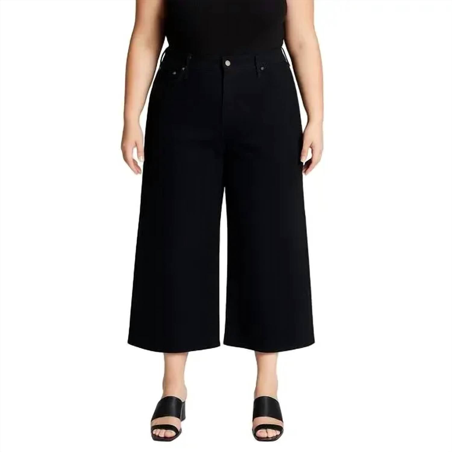 Just as cute as they are comfortable. These cropped wide-leg jeans offer a modern silhouette with a slim fit at the hip and an easy thigh. Designed to sit above the waist, they feature a zip fly with button-tab closure and classic 5-pocket styling. Made from a low-stretch blend of 76% cotton, 22% recycled polyester, and 2% elastane, they provide all-day comfort. Flat measurements include a 19.5" waist, 12" rise, and 25" inseam.